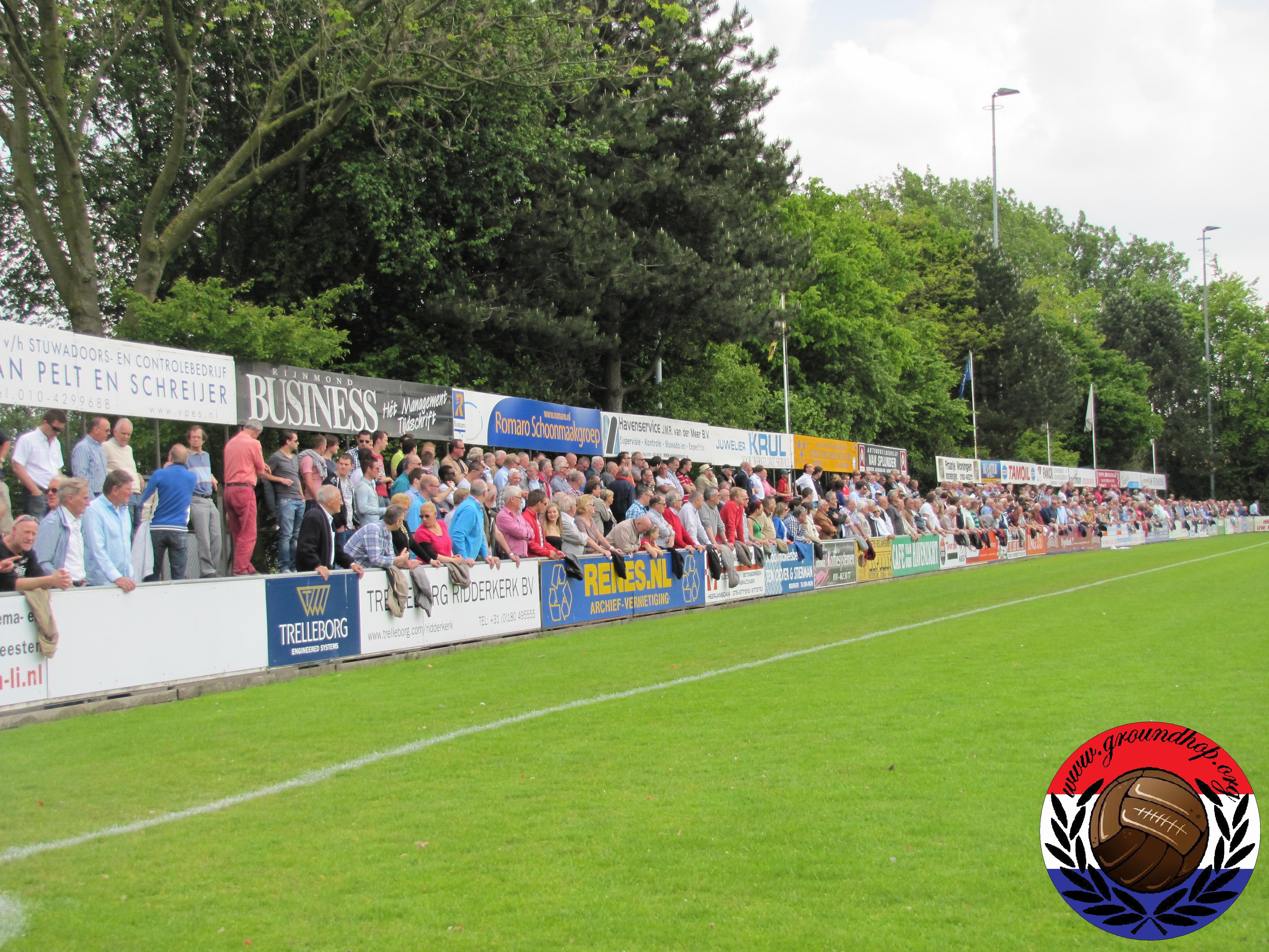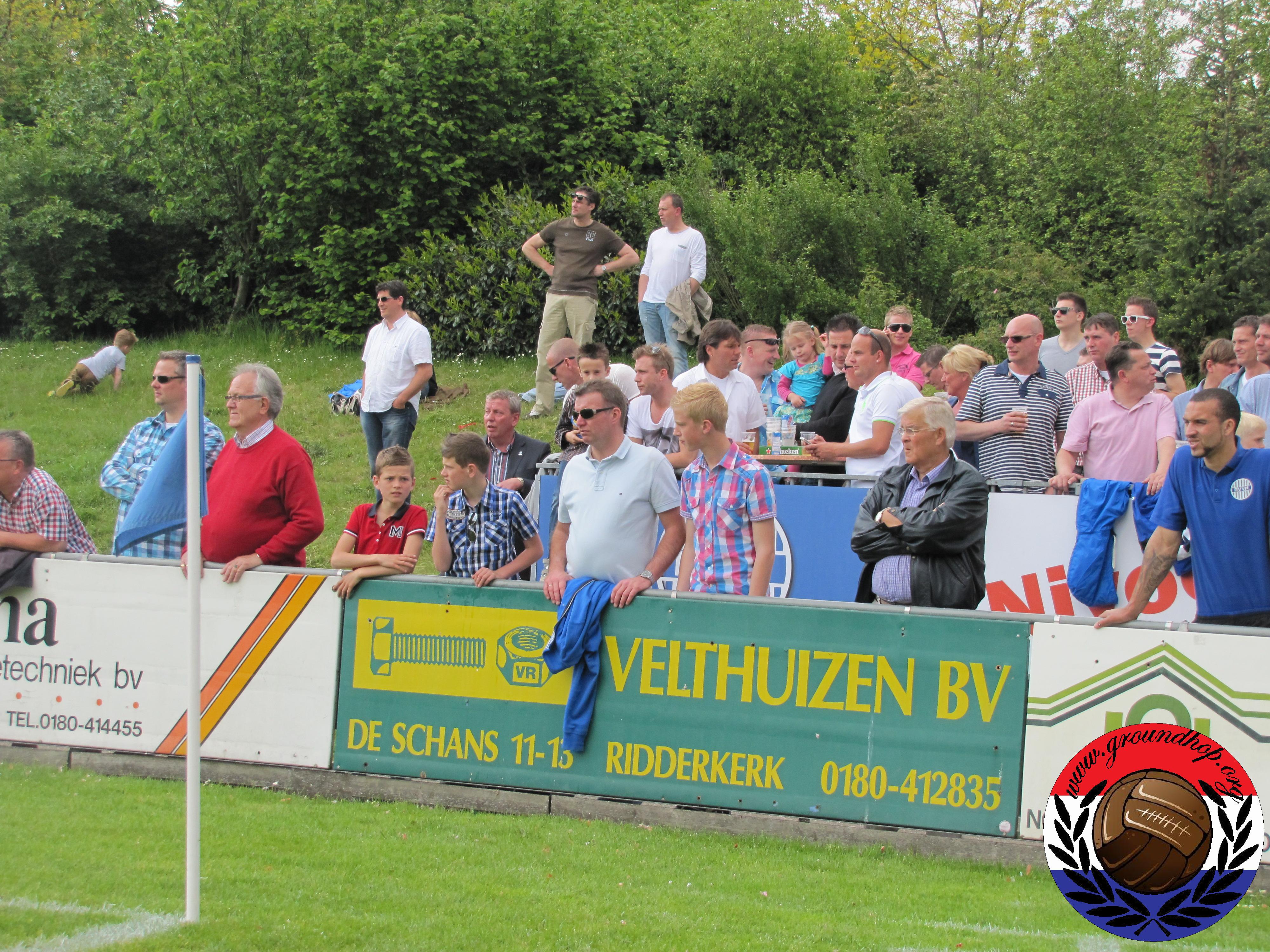 Ruim op tijd arriveren we voor deze wedstrijd in een zonovergoten Ridderkerk. Het sportpark is dan al gezellig druk en wij zoeken een mooi plekje op het terras om daar te kunnen genieten van het zonnetje en een biertje.