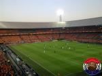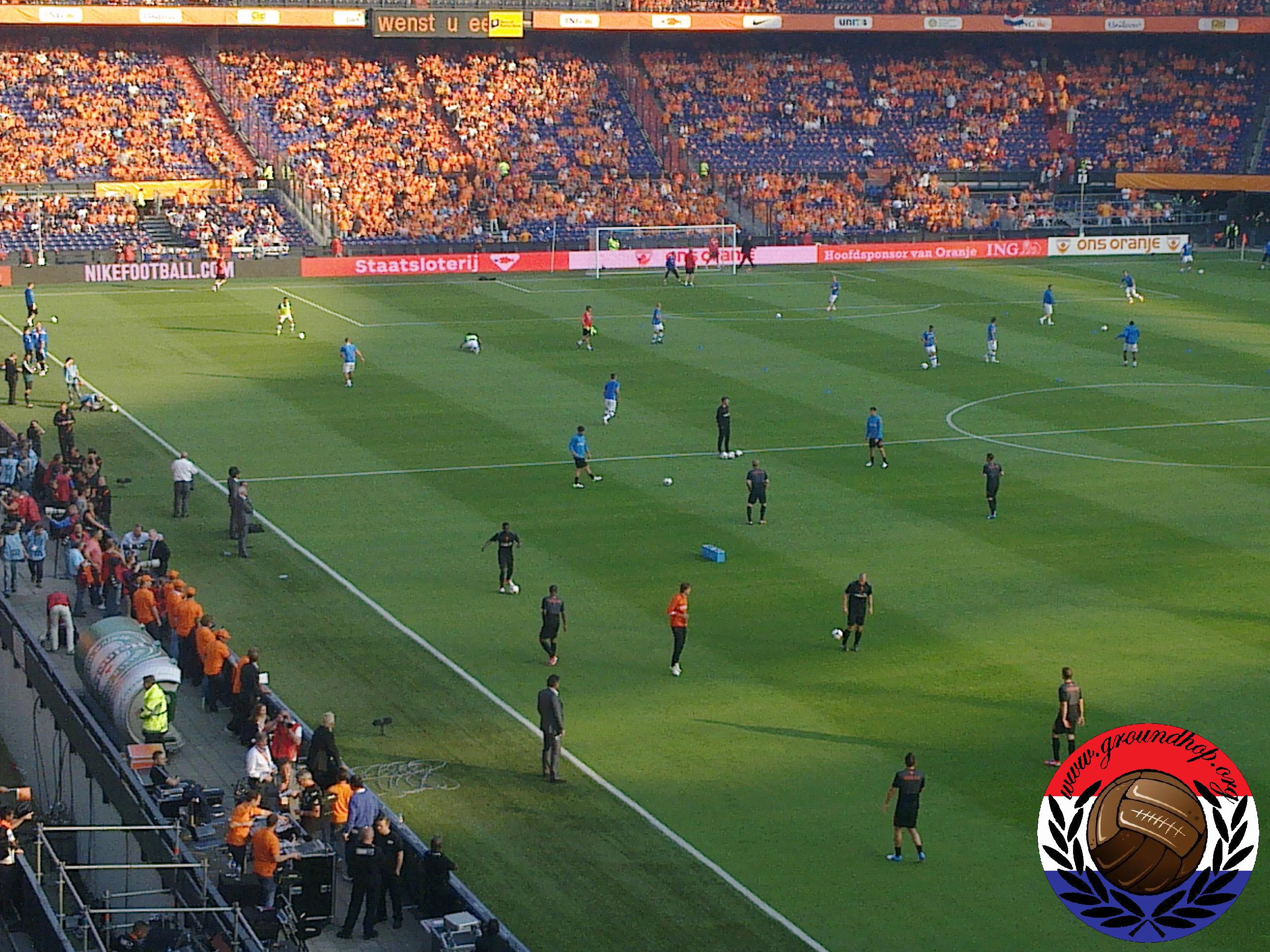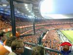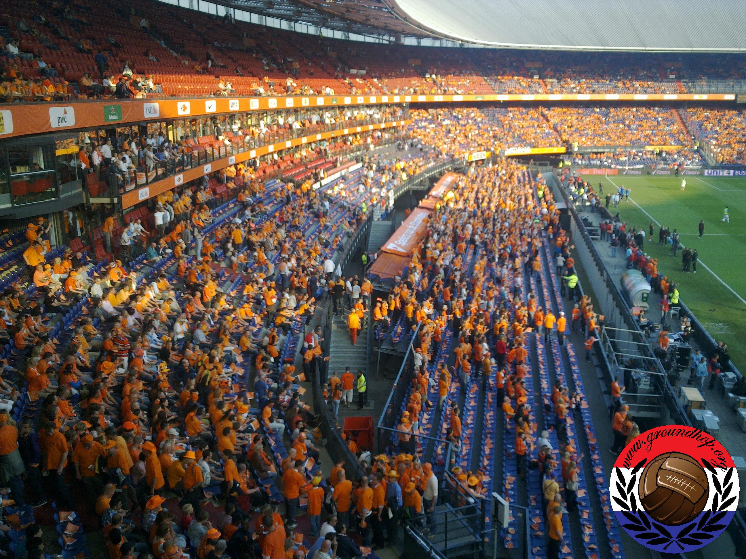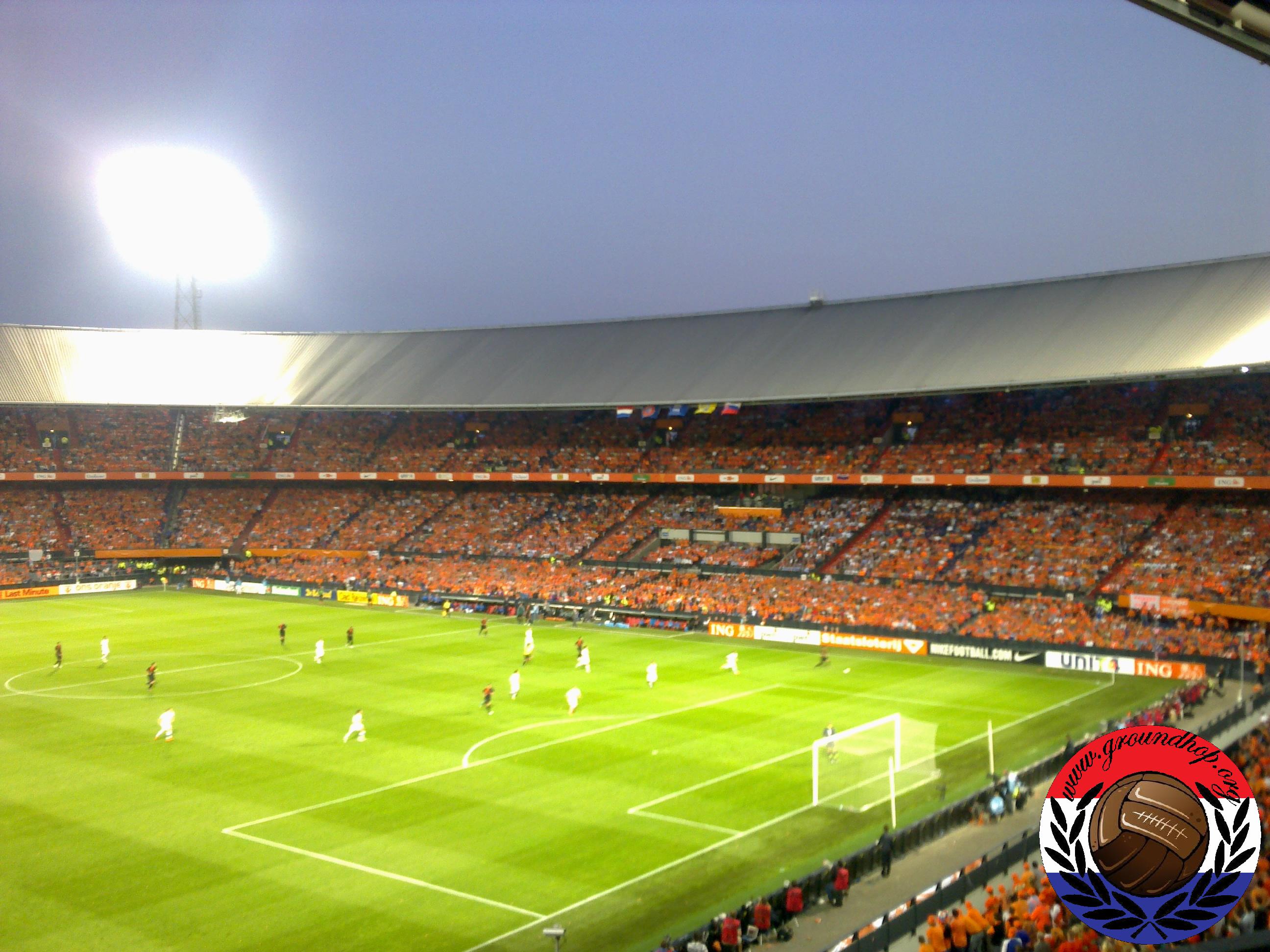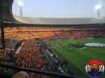 Vandaag tijd voor revanche. Na een kort treinritje naar Rotterdam arriveren we bij de Kuip, dat dit jaar haar 75-jarig jubileum viert. We hebben kaarten voor één van de hoekvakken op de tweede ring, prima plaatsen.