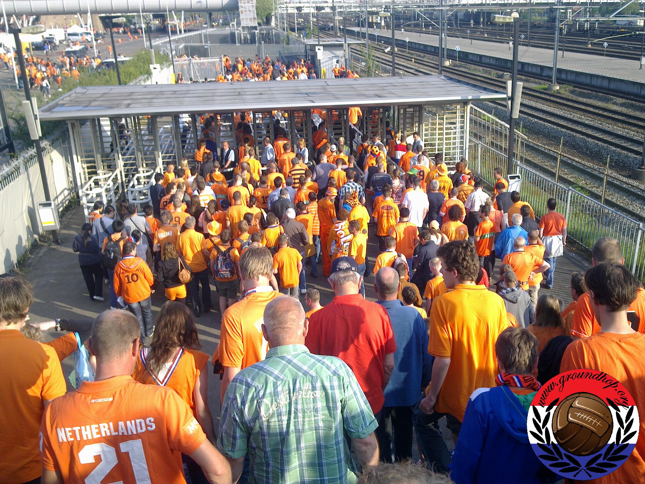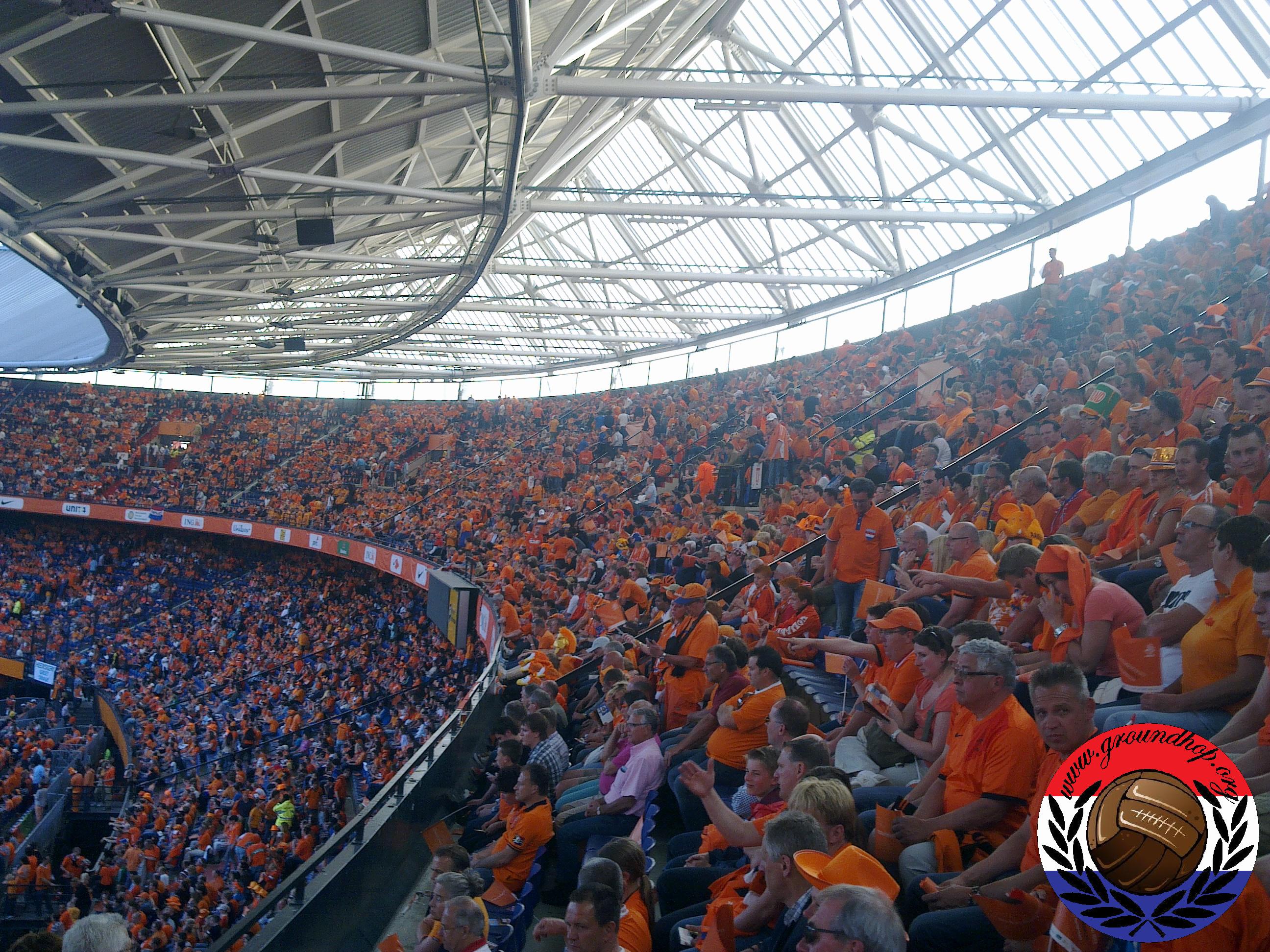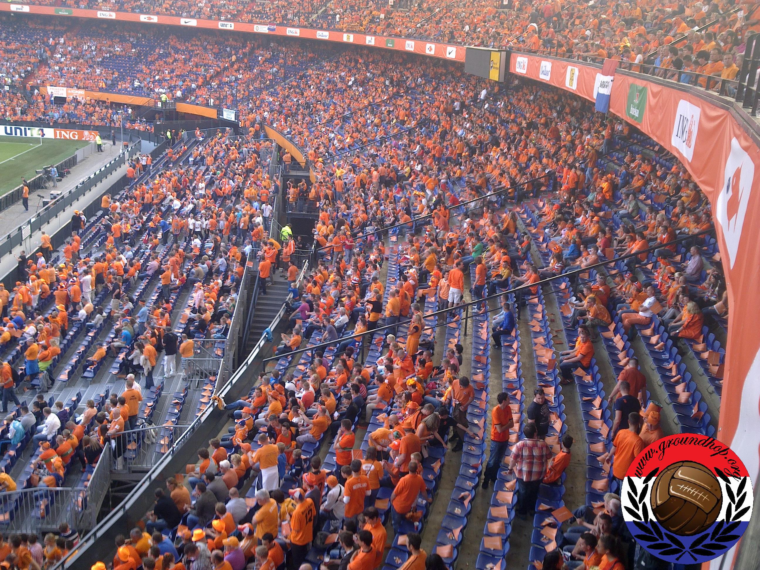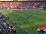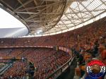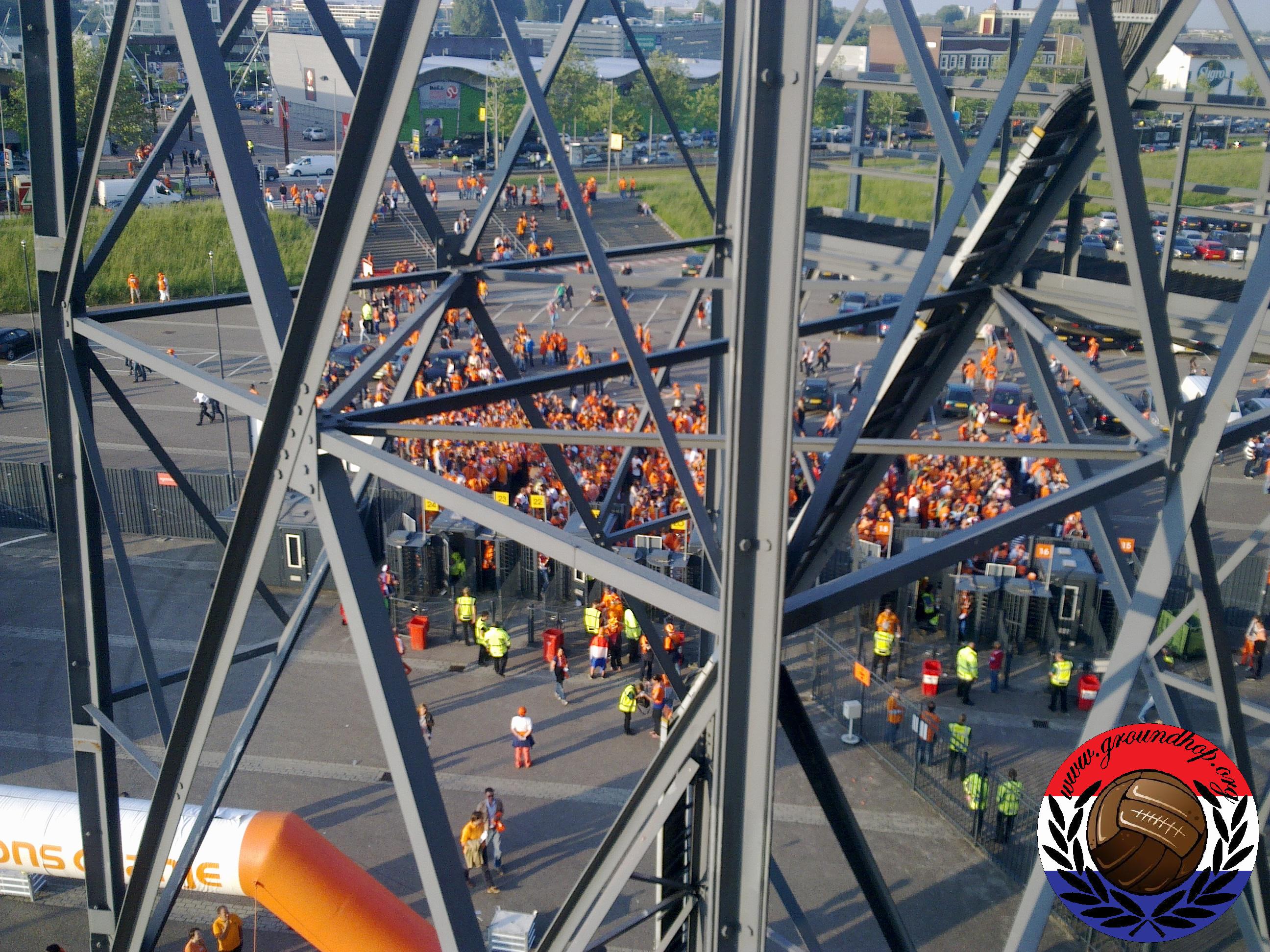 Vandaag tijd voor revanche. Na een kort treinritje naar Rotterdam arriveren we bij de Kuip, dat dit jaar haar 75-jarig jubileum viert. We hebben kaarten voor één van de hoekvakken op de tweede ring, prima plaatsen.