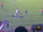 Toen knapte er wat bij de meesten op de Bunnikside en vlogen vele liters bier (zonde toch) en tientallen aanstekers richting de doelman van Ajax. Scheidsrechter Nijhuis twijfelt niet en legt de wedstrijd meteen stil. De Bunnikside gooit er een paar niet godsdienstige spreekkoren tegenaan en er klimt een Utrecht hooligan het veld op en gaat met de cornervlag aan de haal. Een stuk of 10 stewards zijn er nodig om dit tuig af te voeren en de hooligan deelt nog een aantal rake klappen uit aan alles wat er om zich heen bevond. Uiteindelijk werd deze dorpsgek afgevoerd en enkele minuten later besluit Nijhuis gelukkig om de wedstrijd voort te zetten.