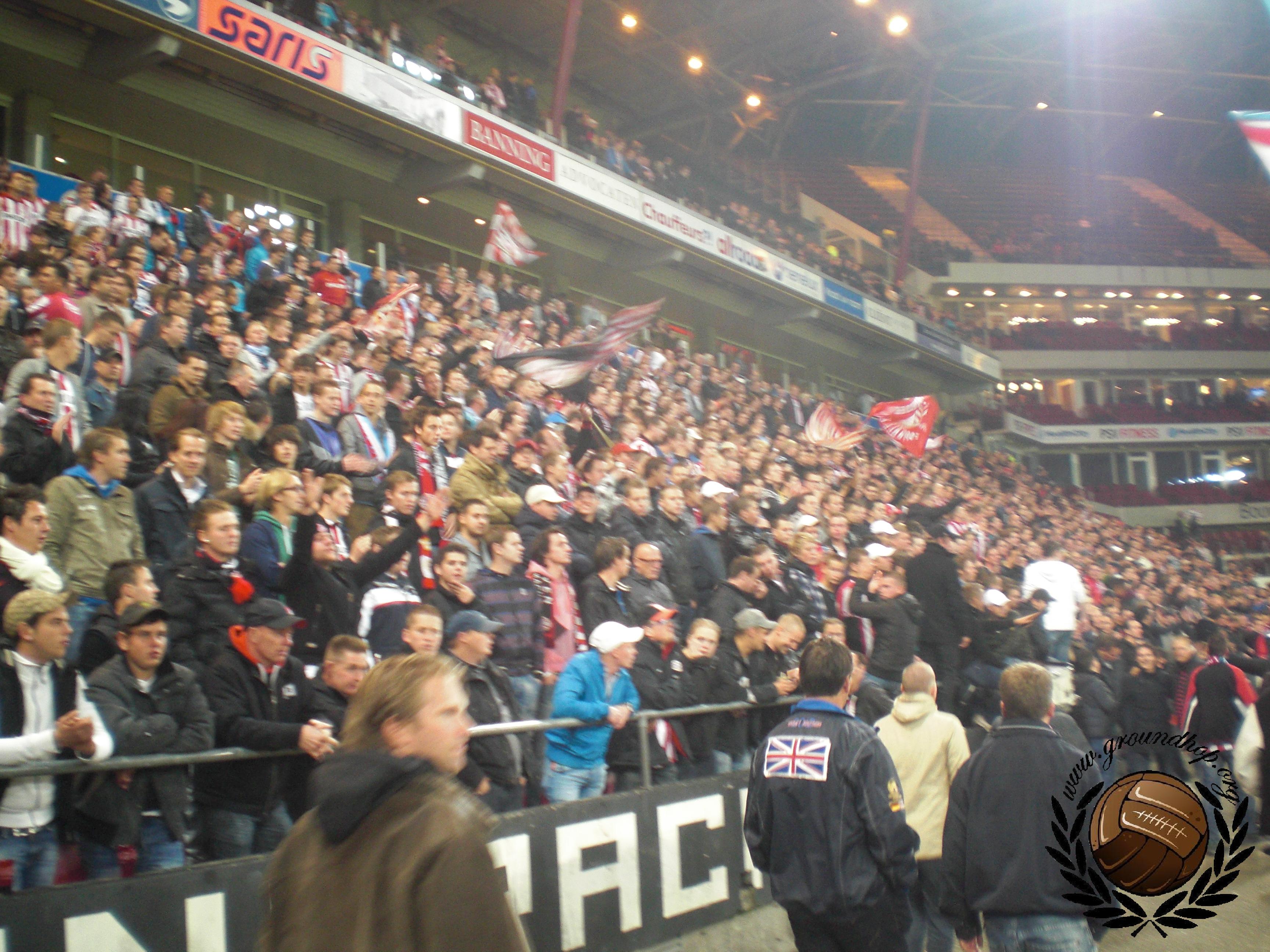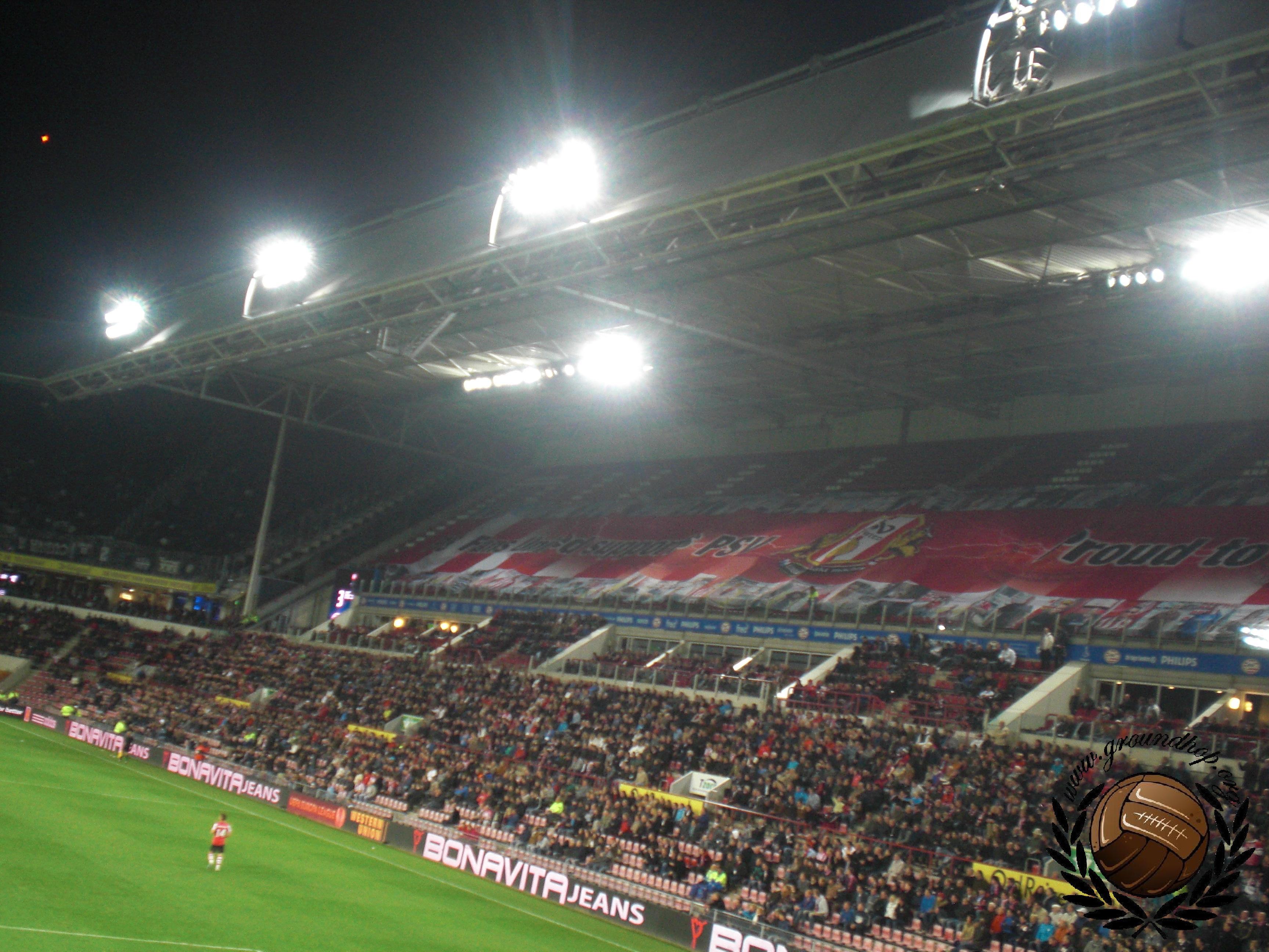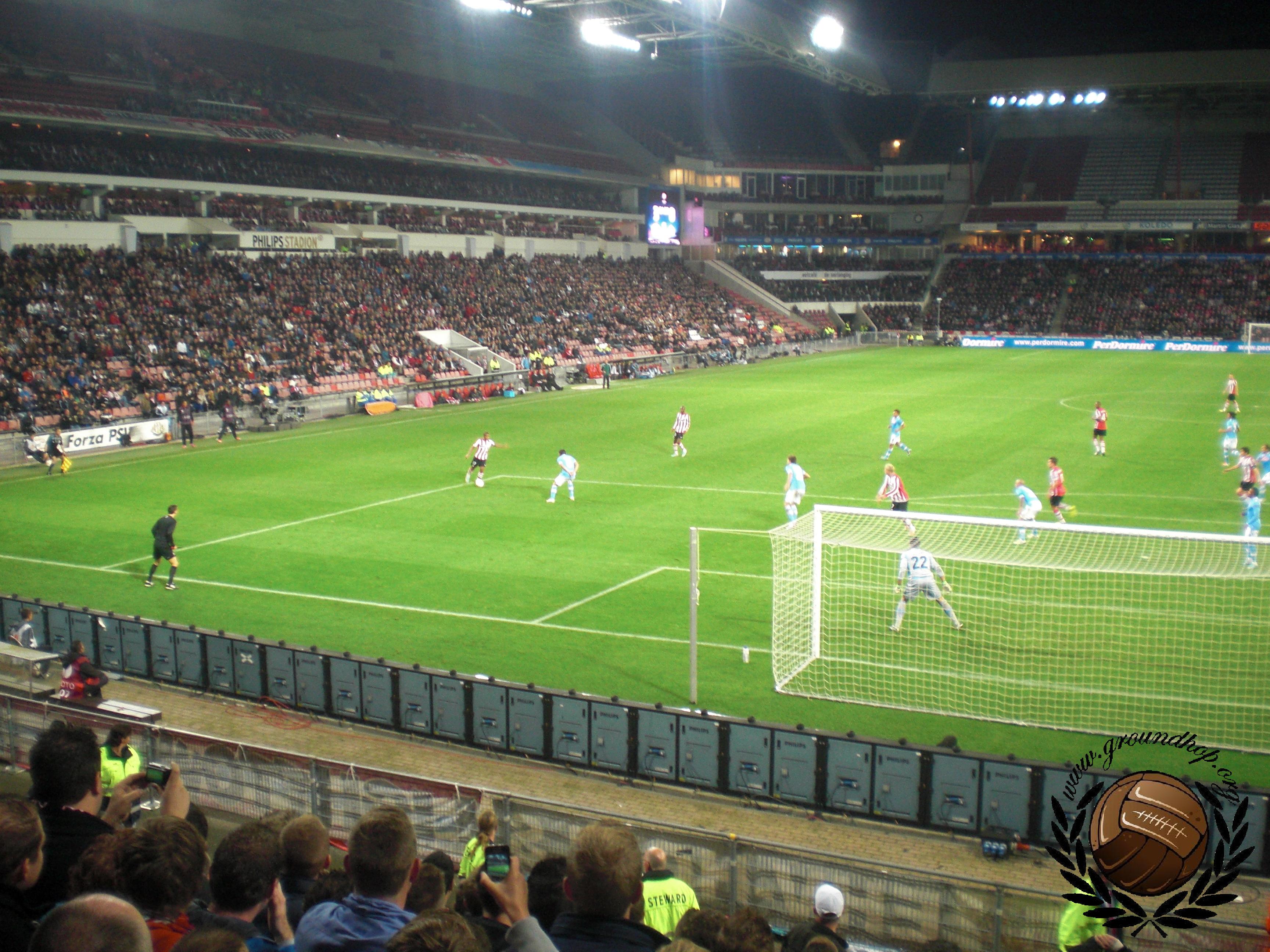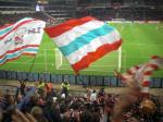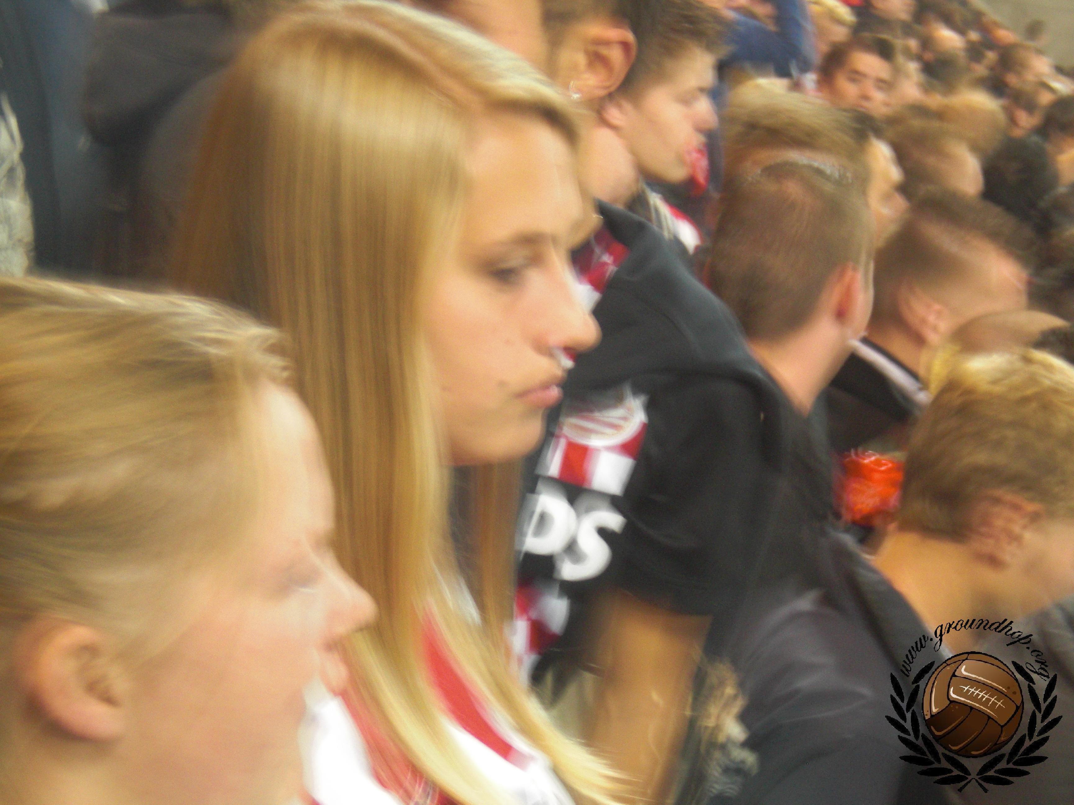 Wij hadden het geluk dat we mooie plekjes wisten te bemachtigen tussen de “ultras” van PSV. Onze verwachtingen zijn hoog voor één van de topclubs van Nederland, maar toch waren we bang dat we bedrogen uit zouden komen. Gelukkig hielp de wedstrijd goed mee want al snel komt PSV op 1-0 dankzij Lens. De supporters blijven vrolijk zingen, alhoewel hadden we toch net iets meer verwacht van een Nederlandse topclub in een Europese wedstrijd. In de 41e minuut maakt Mertens de 2-0 en daarmee gaan we de rust in.