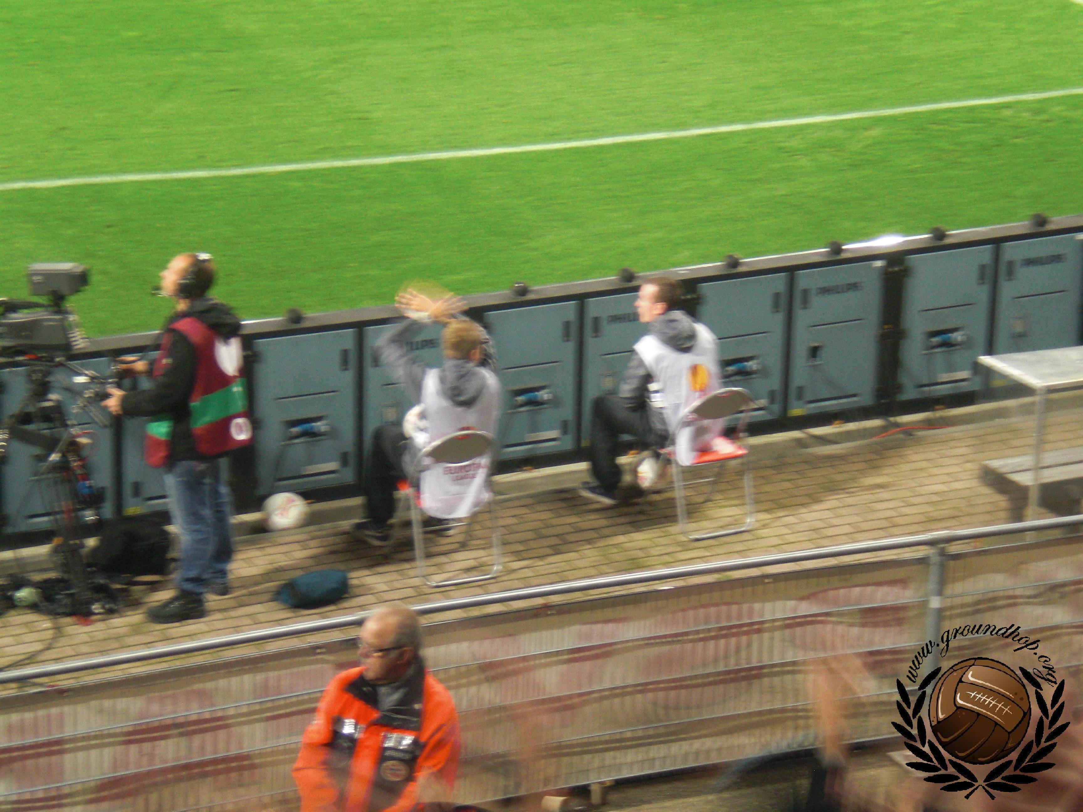 Twee uur voor de wedstrijd vertrokken richting het stadion, dat gelukkig op loopafstand ligt van het centrum. Zoals gewoonlijk een sjaaltje gekocht (was nodig ook voor de winterse tempraturen) en rustig nog een biertje buiten het stadion gepakt.