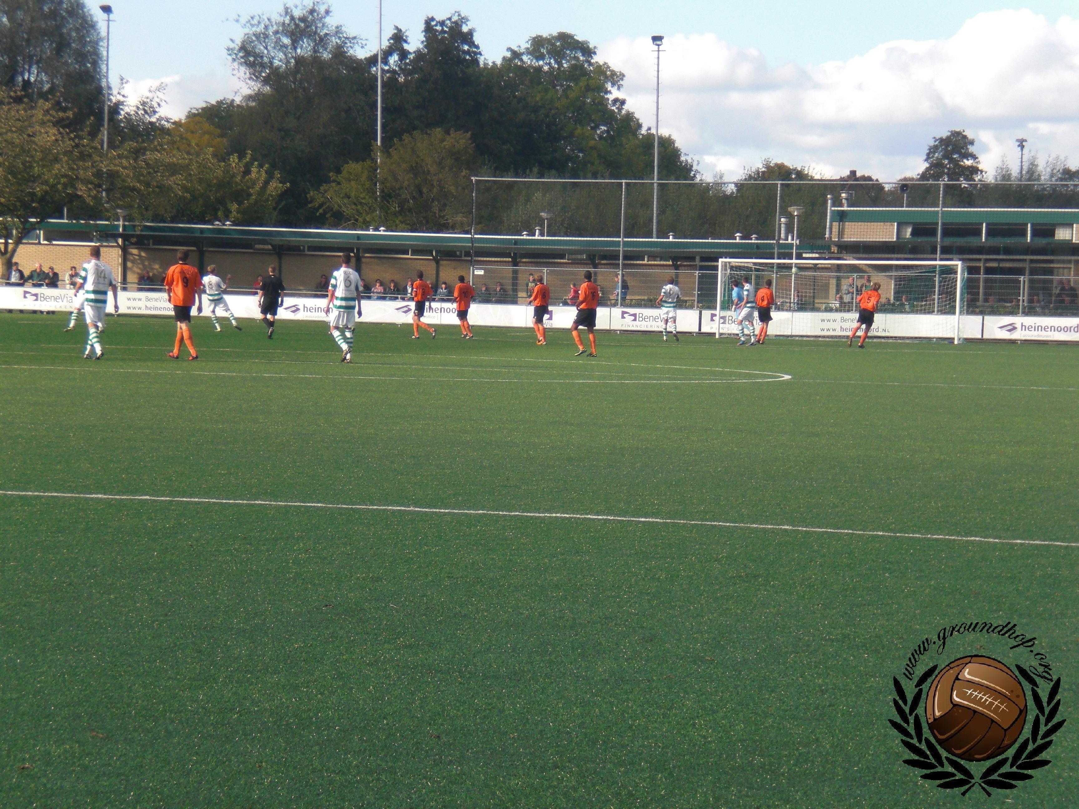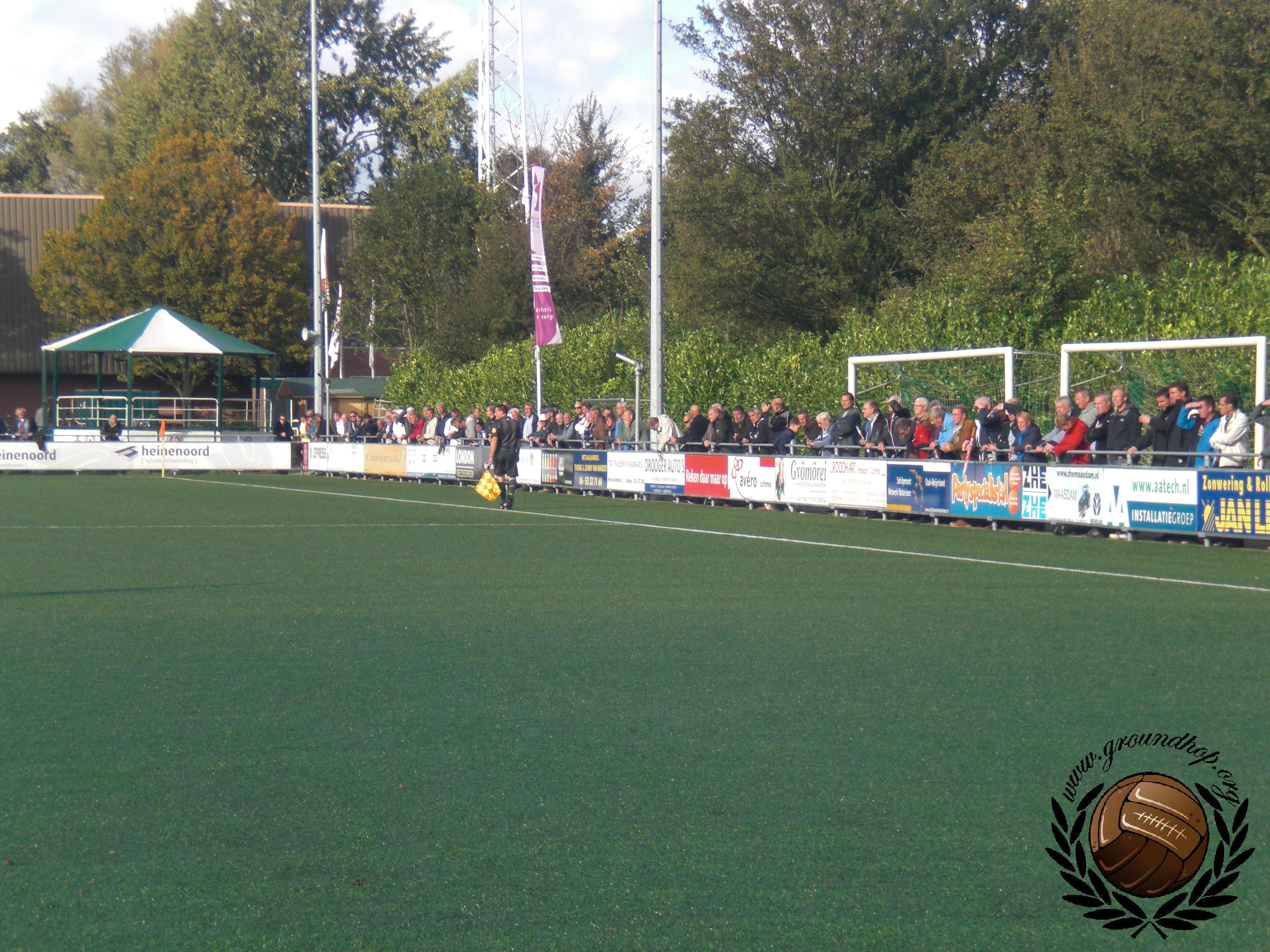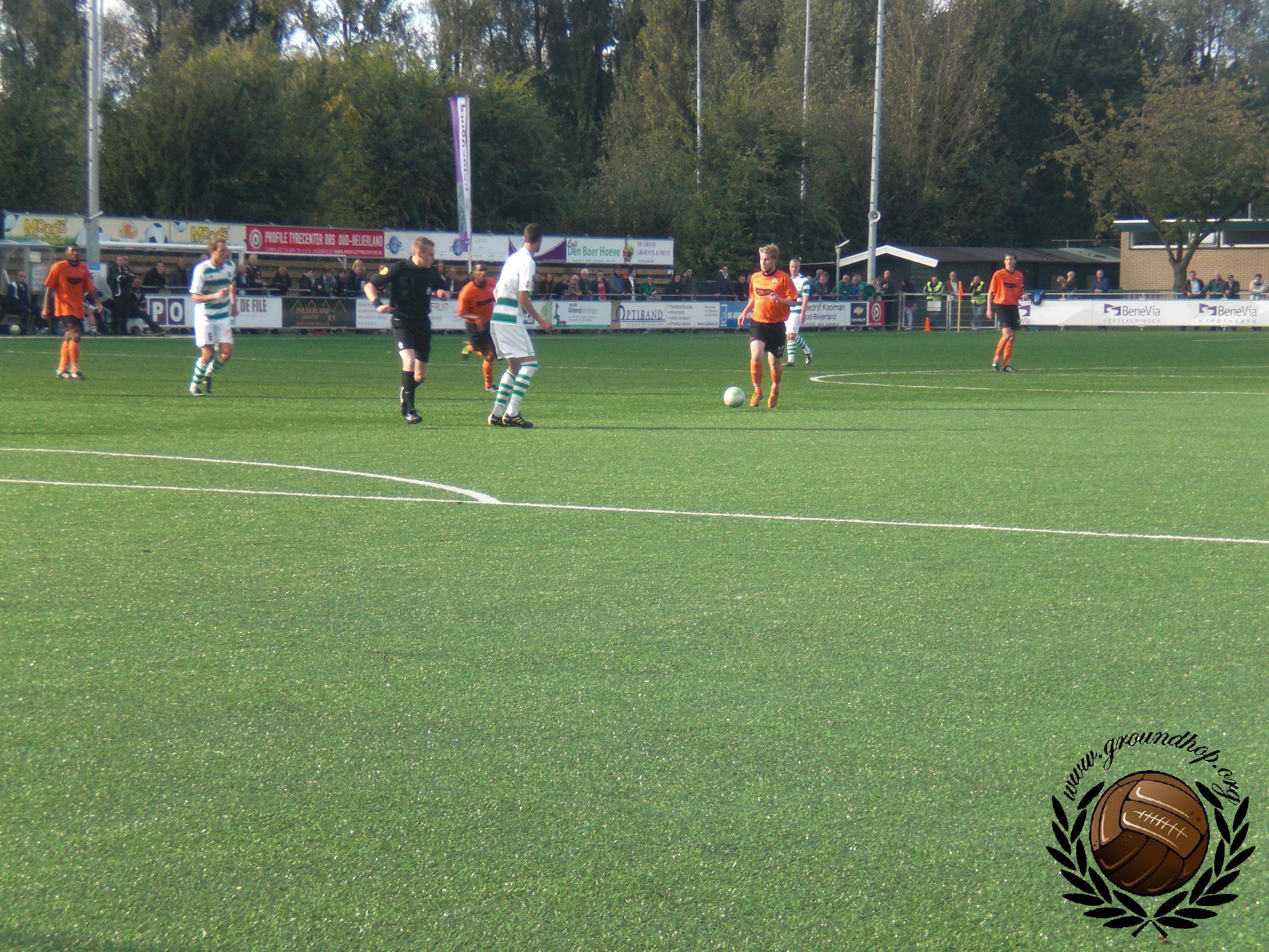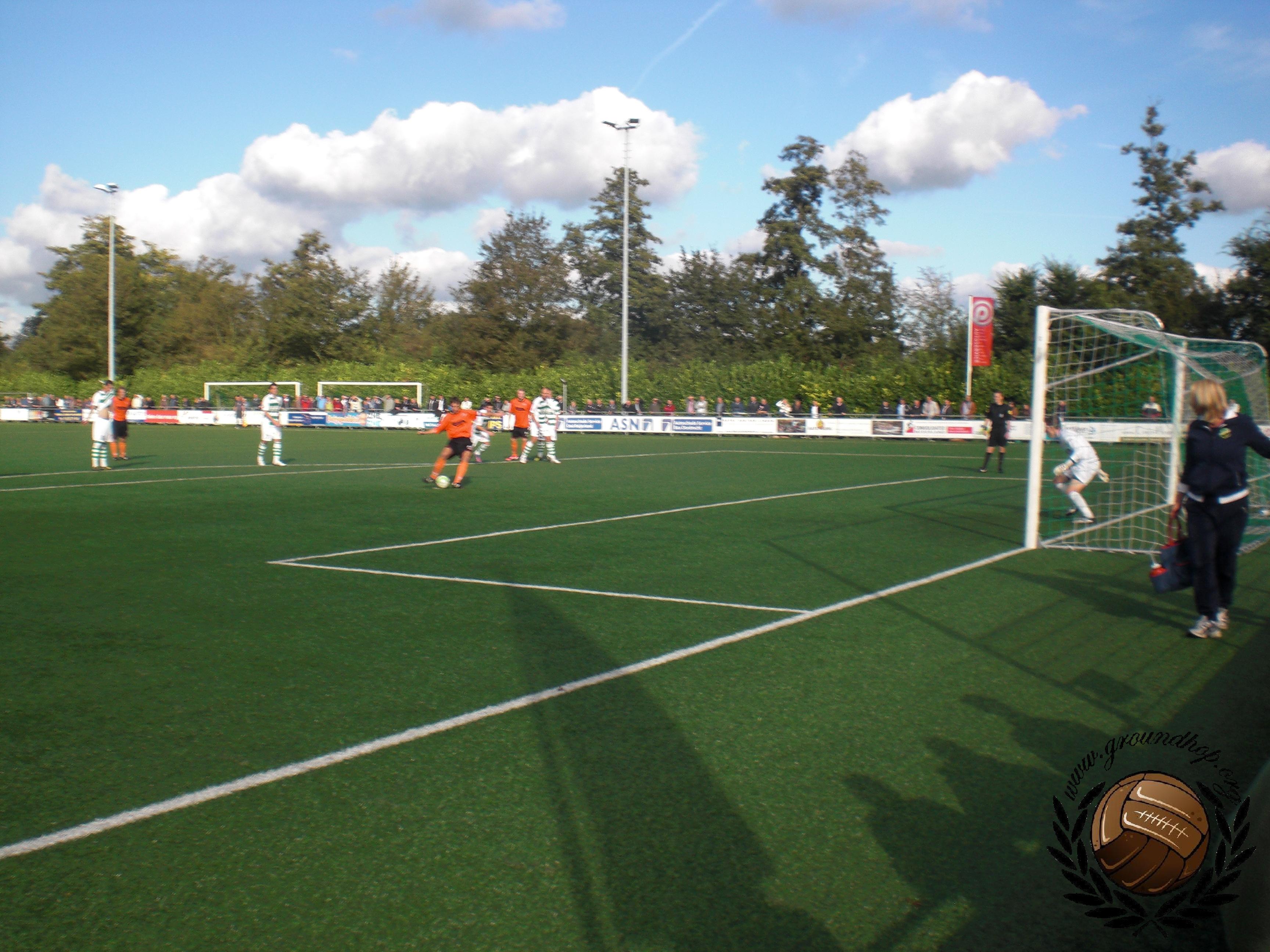 Enkele minuten na de aftrap kwamen we binnen op het sportpark, waar de stand op dat moment nog 0-0 was. Dat zou het de gehele eerste helft blijven. Het was een gelijk opgaand potje voetbal met aan beide kanten gevaar voor de goals.