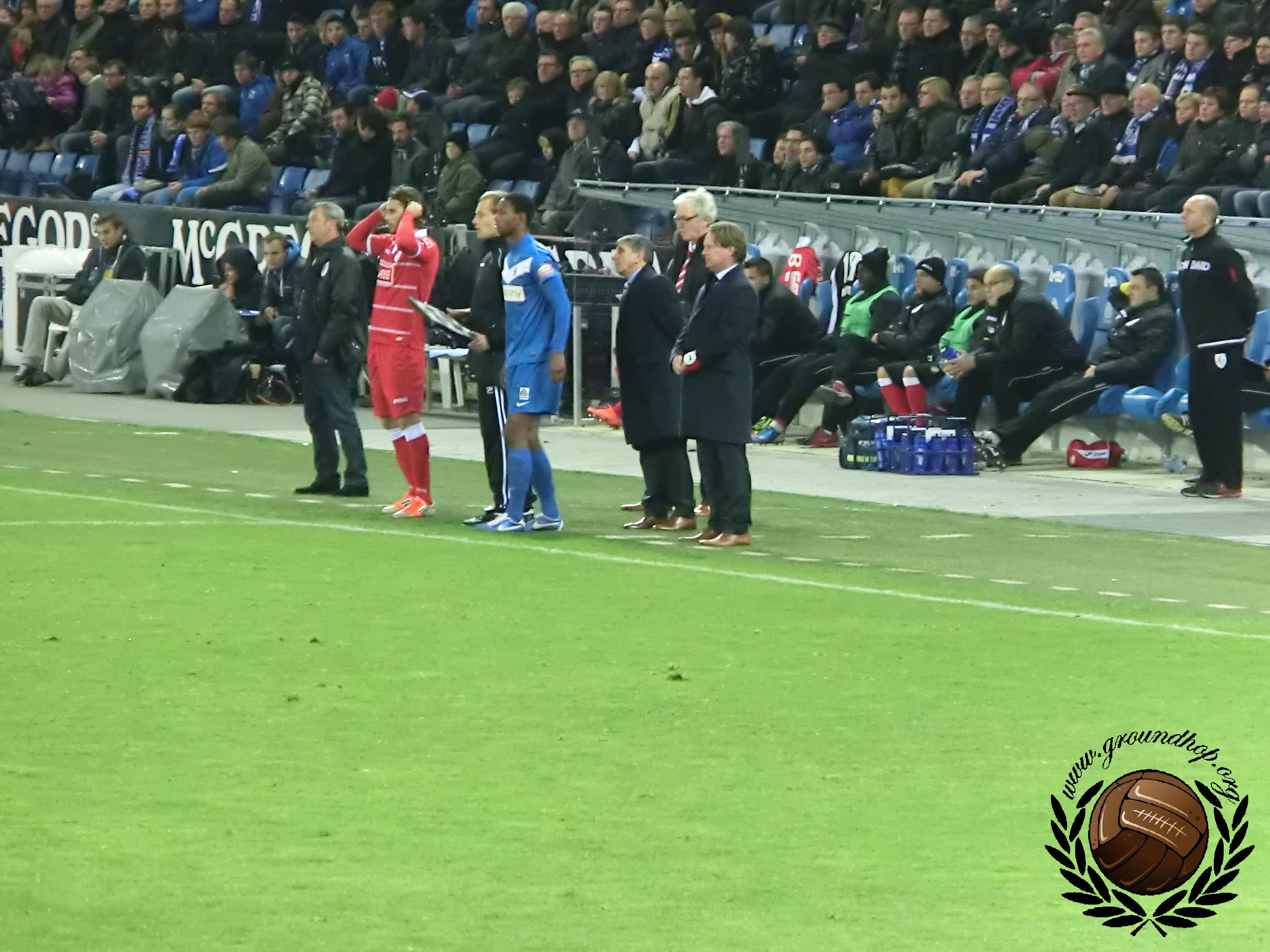 De wedstrijd werd voorafgegaan door een steunbetuiging aan de families die getroffen worden door het sluiten van de Ford fabriek in Genk. Dit misten wij helaas omdat we toen nog buiten het stadion liepen. Enkele foto’s hiervan zijn hier te zien.