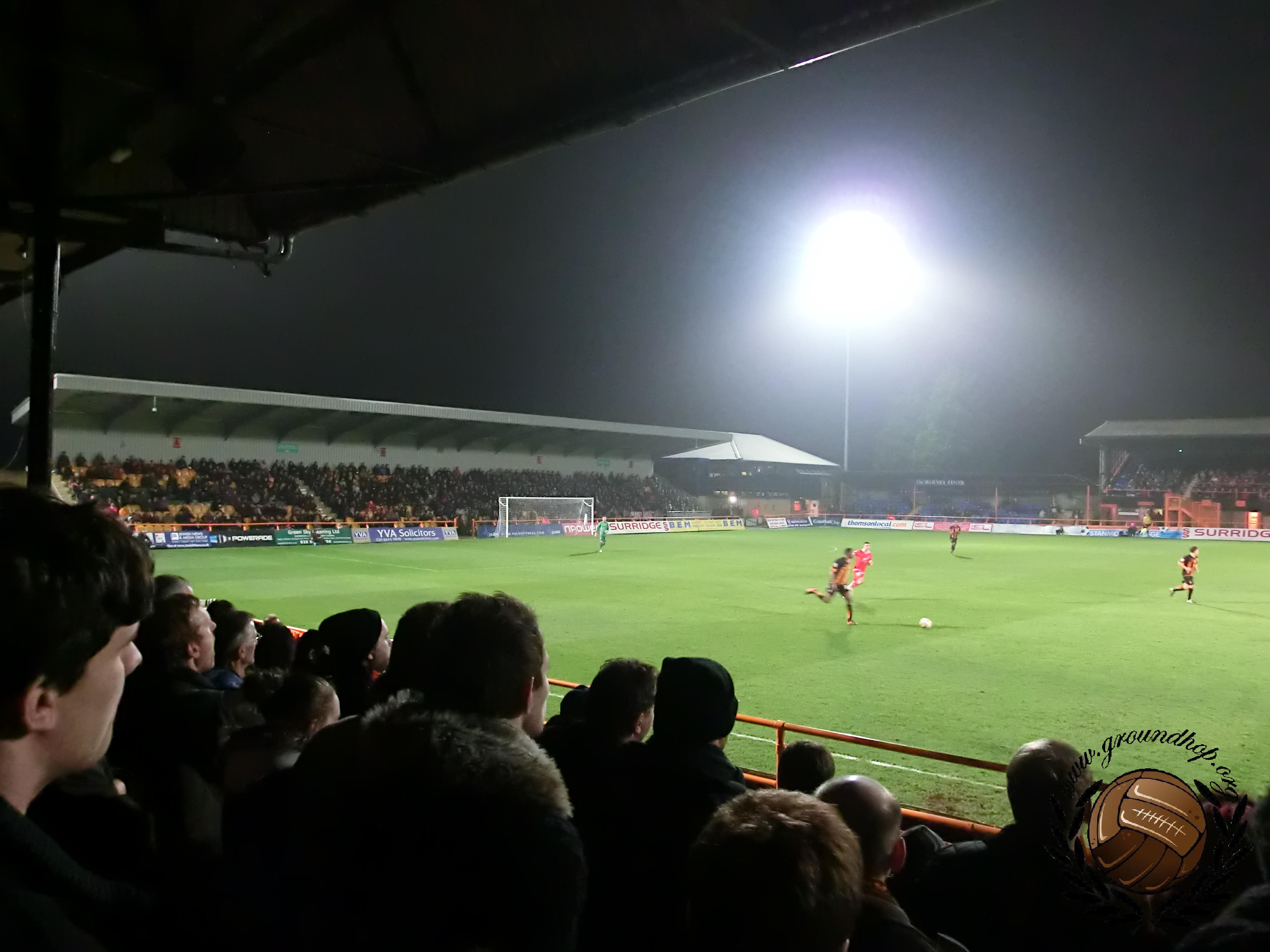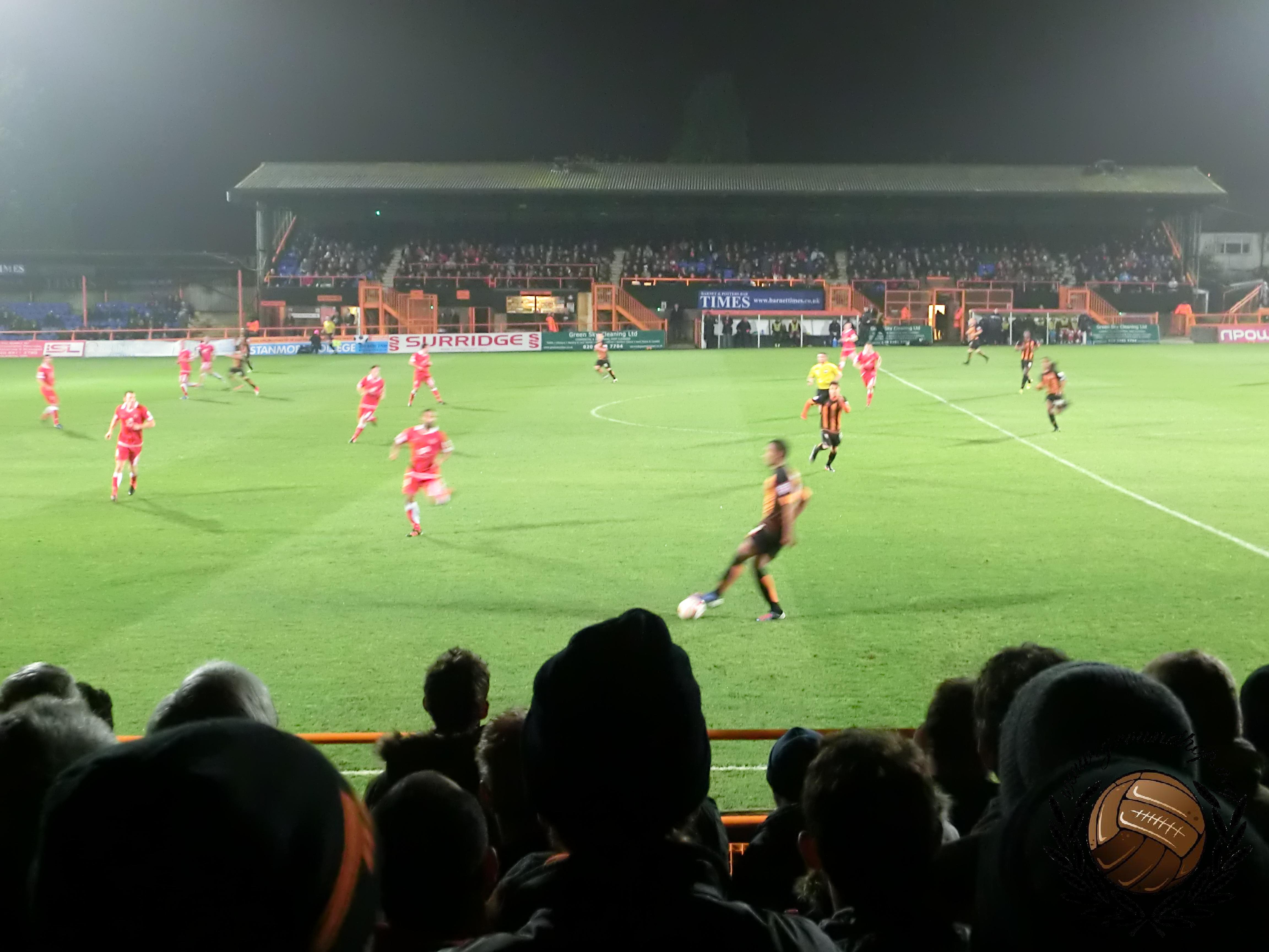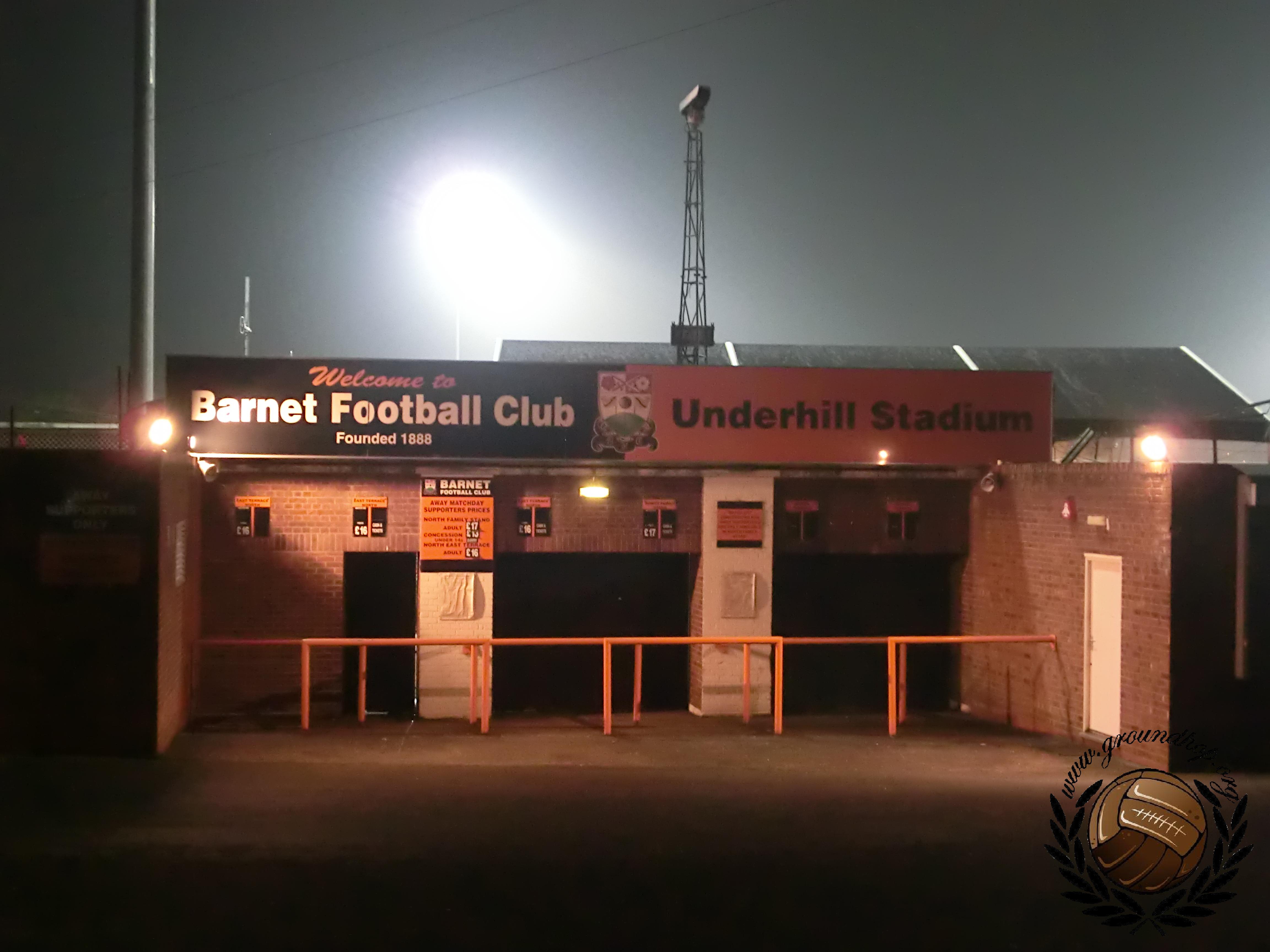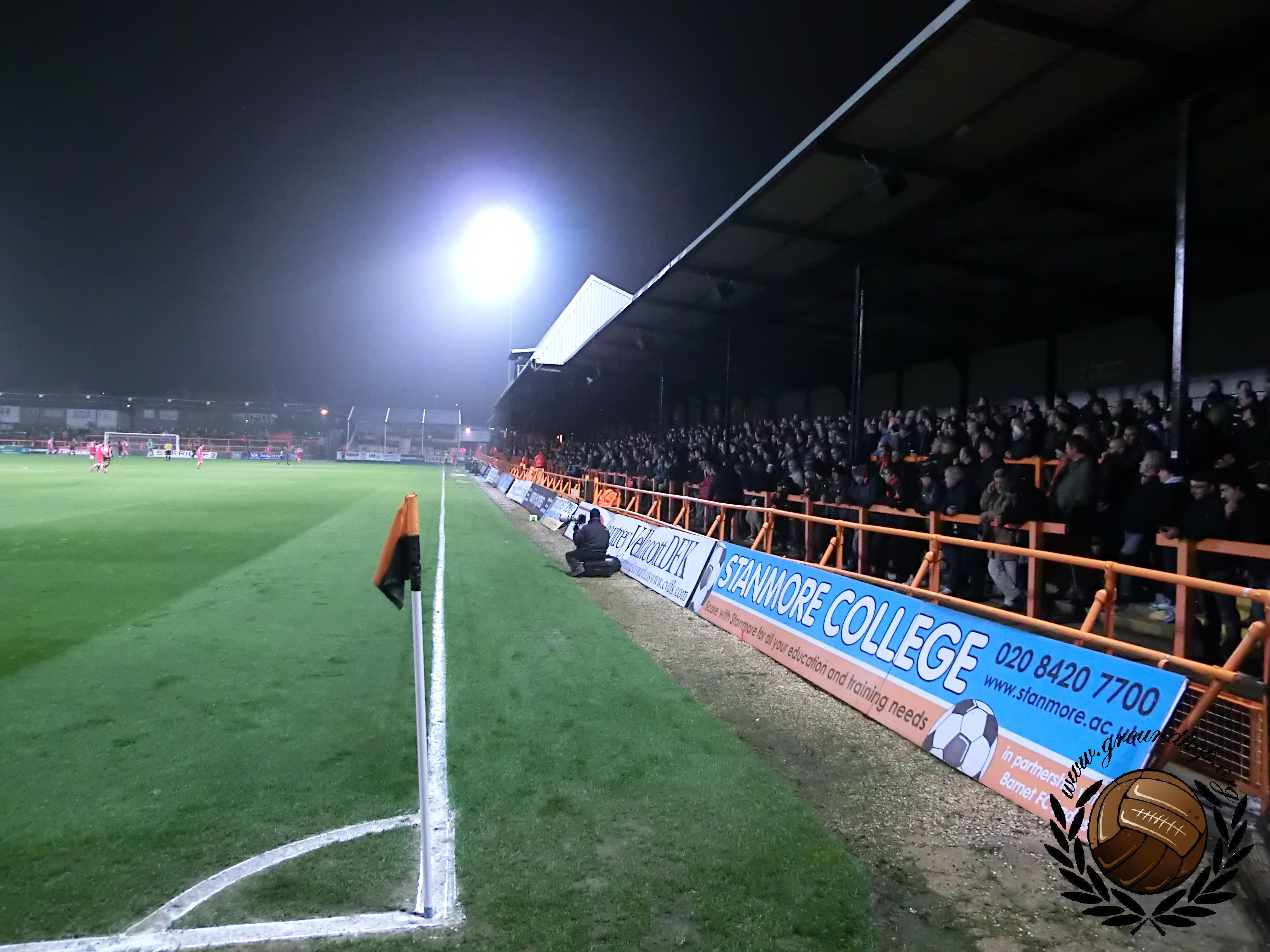 Het stadion van Barnet leent zich er dan ideaal voor om even weg te dromen. Een knus stadionnetje bestaande uit 7 verschillende tribunes en het bekende schuin aflopende veld.