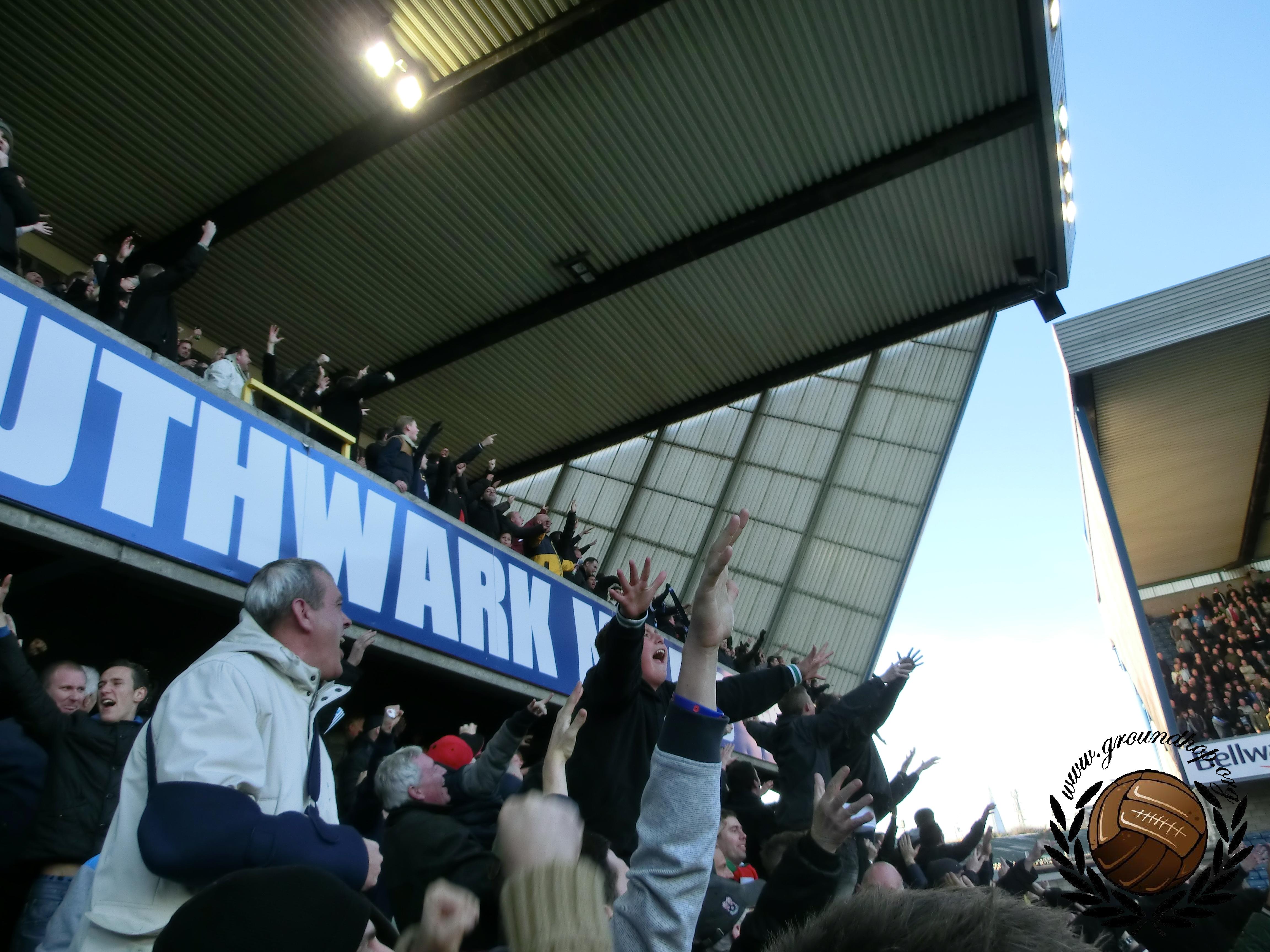 Een goede keus, zo bleek het. Leeds had de hele upper-tier van The North Stand uitverkocht en deze was zeer luidruchtig aanwezig. Ook van Millwall was er een fantastische sfeer. Het bekende “No one like us” werd afgewisseld met een masaal “Miiiiiiiiillllllll” en vooral een hele hoop gescheld op spelers, tegenstander, uitsupporter en leiding.