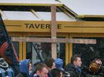 Daar gearriveerd breekt onder de supporters eventjes de pleures uit als iedereen tussen de afgesloten hekken ziet dat het veld bespeelbaar oogt. De hekken krijgen het zwaar te verduren, maar houden stand. De politie wordt ingeschakeld en de ME is ook present. Sneeuwballen genoeg richting de politie, de leus “All Cops Are Bastards” wordt regelmatig gescandeerd en naarmate het protest duurt, wordt er ook zo af en toe nog wat vuurwerk richting de politie gegooid.