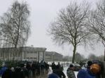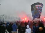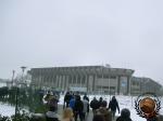 Alweer duurde de corteo veel te lang. Na 40 minuten lopen door de sneeuw is het stadion nog nergens te zien en tot overmaat van ramp komt de politie ons vermelden dat de wedstrijd alsnog is afgelast, eerst leek het een mislukte grap want 5 minuten daarvoor was het veld bij de laatste keuring bespeelbaar verklaart. Helaas blijkt de wedstrijd dus inderdaad ongeveer een uur voor aanvang afgelast en kon iedereen die onderweg was alweer terug naar huis zonder een wedstrijd gezien te hebben.