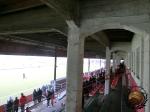Het Lyra Stadion trokken we binnen via de bekende ingang bij de benzinepomp. Gelijk we kwamen uit in de hoek waar de enige twee overgebleven tribunes stonden. Aan de lange zijde de prachtige hoofdtribune en achter de goal een zeer fraaie terrace. Achter de andere goal is de kantine gelegen en de andere lange zijde is inmiddels al gesloopt.