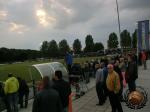 Eenmaal gearriveerd zien wij grote rijen staan voor de ingang. Ondanks dat wij hierdoor de openingsminuut miste stemde dit ons toch vrolijk om te zien hoeveel man er op deze beslissingswedstrijd af komt.