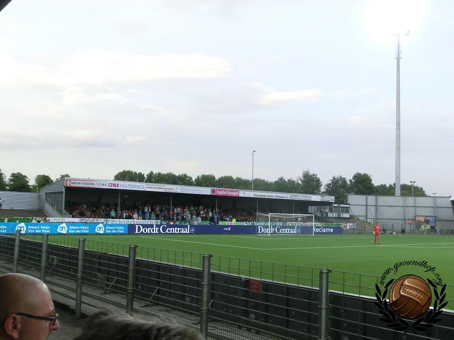 De Noord-tribune met de wat oudere sfeergroep van Dordrecht.