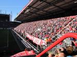 De eerste kennismaking met de Grolsch Veste is prima bevallen. Het is een echt voetbalstadion. De tweede ring zie je vanaf een afstandje al liggen als je erheen loopt en hoe dichter je bij dit kolos in de buurt komt, hoe indrukwekkender het word. Het is absoluut geen dertien-in-een-dozijn-stadion en na De Kuip voor ons misschien wel het mooiste stadion van Nederland.