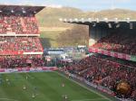 Na de rust was alles anders. Standard speelde onder aanvoering van de drie spitsen, fantastisch voetbal. Braziliaans samba-voetbal was het. Hakjes, trucjes, panna’s alles gooide ze uit de kast. Dit was het beste voetbal wat we sinds Barcelona gezien hadden. De goals bleven dan ook niet lang meer weg. Na een uur spelen was het binnen twee minuten twee keer raak en Standard ging door. Genk werd zoek gespeeld en pas na de 3-0 en diverse wissels ging de Luikse storm enigszins liggen.