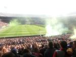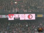 In werkelijkheid was alleen de opkomst spectaculair. Feyenoord had veel vuurwerk en op diverse vakken gingen rookpotten en fakkels af. Dat beloofde veel goeds, maar het werd een grote anticlimax. Nog nooit zagen wij zo een slappe Klassieker. Zowel op het veld als op de tribunes was geen enkele beleving. Het was het grootste gedeelte van de tijd stil in de Kuip en de pro-Feyenoord liederen kwamen er maar sporadisch doorheen. De liederen die er wel doorheen kwamen, waren ook weer in een sneltreinvaart voorbij. Enkel anti-Kuipers en anti-Ajax teksten konden op bijval rekenen. En dat is jammer want liefde voor eigen club zou toch altijd zwaarder moeten wegen dan de haat jegens de aartsrivaal. Zelf doen we daar absoluut niet aan mee, dan anti-Ajax gedoe. Ajax is, net als Feyenoord, een prachtige club met een rijke historie. We beklimmen dan ook zonder moeite de tribunes van de ArenA en we gunnen Ajax de titel net zo erg als Twente of Vitesse. Maar als Rotterdammer wil je niet verliezen van Amsterdam, zeker niet in eigen huis.
