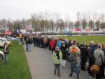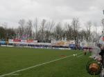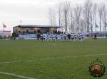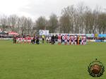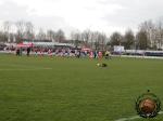 Met de trein trokken we richting Dordrecht om vanaf daar de MerwedeLingeLijn van Arriva af te zakken richting Leerdam. Na ongeveer drie kwartier kwamen we aan in het glasblazersdorp. Waar we langs de weg al groepjes mensen naar het sportpark zagen trekken. Het begon toch wel te kriebelen en vol goede moed trokken we richting het sportpark. Daar aangekomen werden onze verwachtingen overtroffen. Zo’n uur voor de aftrap waren er al een man of 1.000 aanwezig en hier zouden zich nog zo’n 800 man bij gaan voegen.