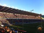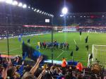 Ook op de tribune vloeit het bier rijkelijk en voordat we het door hebben, stonden de spelers op het veld. Onze plekken waren eventjes niet al te fijn toen duidelijk bleek dat er ook een redelijk aantal rookpotten het stadion in gesmokkeld waren. We proberen het te filmen terwijl we bijna stikken door de rookontwikkeling die bleef hangen wegens een aantal spandoeken.