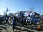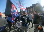 Op een plein wat steeds voller begint te lopen, vliegt de tijd voorbij. Het voorbijgaan van de geplande corteo van Blue Army is voor ons het sein om ons richting het stadion te begeven.