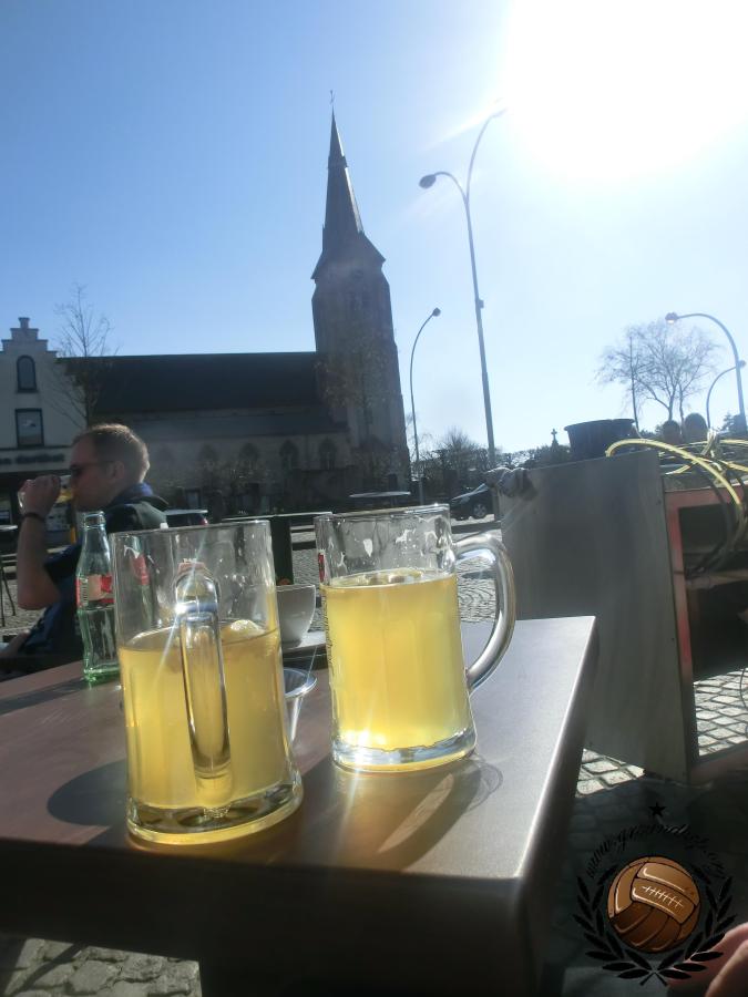 In Brugge genieten we van een aantal liter Hoegaarden in het zonnetje.