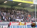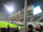 Na de derby in Katwijk trokken we richting Leuven. Een rit die, zeker rondom spitstijd, nog wel eens wat langer zou kunnen gaan duren dan gepland. Het idee was nog wat stadions te vincken onderweg maar daar kwam het niet van. Ook eten werd over geslagen en dat is maar goed ook want pas rond half acht kregen we Stadion Den Dreef in het vizier. Een redelijk modern stadion wat gebouwd is binnen in een oud stadion. De oude staancurve staat er ook nog, de nieuwe tribune is er simpelweg voor gezet.
