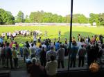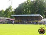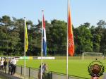 Helaas komt aan alles een eind, zo ook aan onze kennismaking met het centrum van Rijen. We lopen richting het sportpark en komen op een keurig tijdstip aanzetten op het terrein. Daar kopen we maar weer een lootje als wedstrijdkaartje en bestellen snel frituur.