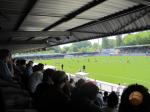 De uitsupporters gaan achter hun ploeg staan, maar komen vocaal echter niet in de buurt bij de supporters van Dordrecht.