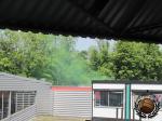 De supporters van Dordrecht pakken goed uit met een aantal groene rookpotten en fakkels.