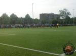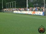 De weergoden zijn ons aan de aftrap nog redelijk goedgezind. Een waterig zonnetje met zo af en toe een wolk maakt het aangenaam om deze wedstrijd op het kunstgrasveld (hoofdveld is ingezaaid voor de wedstrijd tegen Feyenoord op 11 juli) te aanschouwen. Maar bij gebrek aan vocht en sfeer verkiezen wij vlak na de aftrap al de kantine in te duiken.