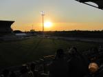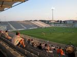 We arriveren een uur van tevoren bij het stadion. We zijn de enige. Toevallig zien we een mevrouw wat kussentjes neerleggen op de VIP-stoelen, waaruit wij concluderen dat hier toch echt gespeeld gaat worden straks.