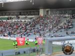 Wij vluchten maar snel naar binnen en nemen plaats vlak boven de Gladiators Nemausus. Wij hebben kaarten op het vak van deze harde kern. Gelukkig hadden zij wel wat merchandise te koop. Na de standaard verbaasde gezichten van de Fransen die merken dat we van “Les Pays Bas” komen, kunnen we dan toch een sjaal van Nîmes om ons nek knopen.