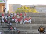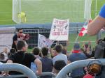 Buiten het stadion hoorde we al flink wat getrommel, wat ons uiteraard goed beviel. Helaas bleek, toen we dichterbij kwamen, dat dit kwam van een hopeloos zigeunerbandje dat welgeteld één nummer had ingestudeerd. Helaas schroomden ze dan ook niet om deze melodie tot in den treuren te besloten herhalen.