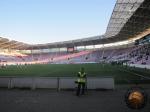 Een half uur voor de aftrap betreden wij het stadion wat werd gebouwd voor het EK van 2008. Hier werden de drie onderlinge wedstrijden tussen Turkije, Tsjechië en Portugal afgewerkt voor nagenoeg uitverkochte tribunes. Vandaag is één op de vijf stoeltjes bezet.