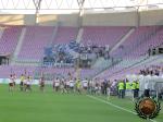 Onze kaartjes hebben wij zo te pakken en niet veel later komt Section Grenat aanlopen met veel lawaai. Zo’n groep hadden wij niet verwacht van deze club, en zo krijgen we opeens toch veel meer zin in de aftrap.