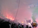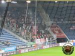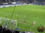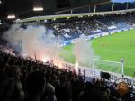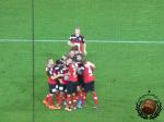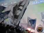 Tijdens ons gewapper met de vlaggetjes, die we tot drie keer toe moesten repareren, treffen we meteen de eerste pyro. Ook de gasten (met zo’n heerlijk Duits adelaartje in het logo) maken er een feestje van met meerdere capo die voor de hekken van het vak staan.