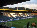 Met een capaciteit van 17.800 en een opkomst van nog geen 10.000 blijkt het echter bij lange na niet uitverkocht. We gaan de tribune op en krijgen meteen twee vlaggen in onze handen geduwd. Of we alsjeblieft even willen wapperen bij de opkomst, zo gezegd zo gedaan. We zijn de moeilijkste niet.