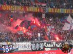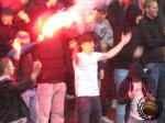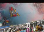 We vergapen ons op de harde kern van Basel en op het scherm daarboven. De TV die er hangt is zelfs voorzien van een heuse tijdsbepaling wanneer wat wordt uitgezonden. De wedstrijd vangt aan met een aantal leuke liedjes van Basel kant en pyrotechniek vanuit het uitvak. Al snel komt de fris voetballende FC op voorsprong na een mooie aanval met González als eindstation. Ook van de kant van Basel is nu het nodige vuurwerk te zien.