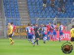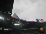 Met nog anderhalf uur te gaan lopen wij richting de poorten van één van de lelijkste stadions aller tijden (van de buitenkant dan he). Wij concentreren ons echter op wat er zich binnen gaat afspelen. Met een kaartje dat meer weg heeft van een busticket heten wij onszelf van harte welkom en gaan richting onze stoelen. Helaas hebben we één van de weinige niet-overdekte plekken in het stadion. Dit zal naarmate de wedstrijd vordert nog een flinke domper blijken.