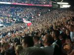 De wedstrijd stond dus bol van de spanning en dat was te merken. Terwijl good old Lee Towers het legioen opwarmde met Mijn Feyenoord ging het bij het uitvak mis. Standard hooligans braken uit en vielen de stewards die bij de volgende hekken stonden aan. Feyenoord liet dit niet over z’n kant gaan en brak ook uit. Wat heen en weer getrek en geklap bij de plexiwand was het resultaat. Het duurde een eeuwigheid tot de ME de Standard hooligans terug hun vak in kwam slaan. Als er op de Feyenoord vakken maar een poep of een scheet gelaten wordt staan er direct zes pelotons klaar om de schuldige met groot machtsvertoon in te rekenen, maar als er een keer echt iets aan de hand is duurt het uren.