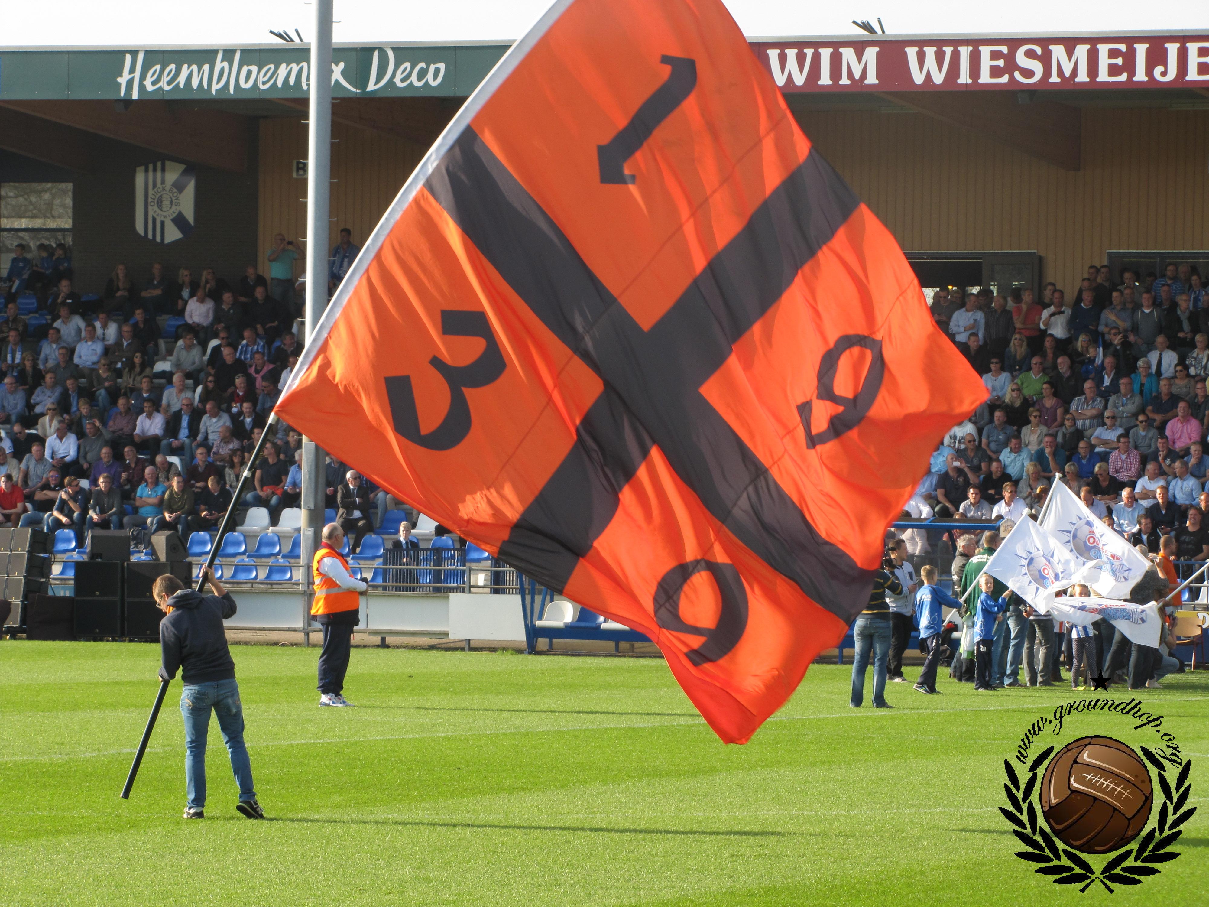 Voor de wedstrijd plant Katwijk-knulletje vlag in middencirckel.