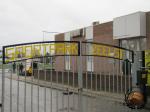 De eerste helft aanschouwen wij vanuit de kantine. Gelukkig bemachtigen we al snel een sjaal en een eersterangs plek voor het raam.