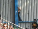 We staan niet al te lang stil bij wat er allemaal gebeurd, wij hebben nog een wedstrijd te bekijken. Pal bij de uitgang zien wij hoe een gemaskerde Bielefelders een uitsupporter, die op de thuisvakken zat, van zijn SCP-shirt ontdoen. Hebben ze weer wat om af te branden bij de volgende derby.