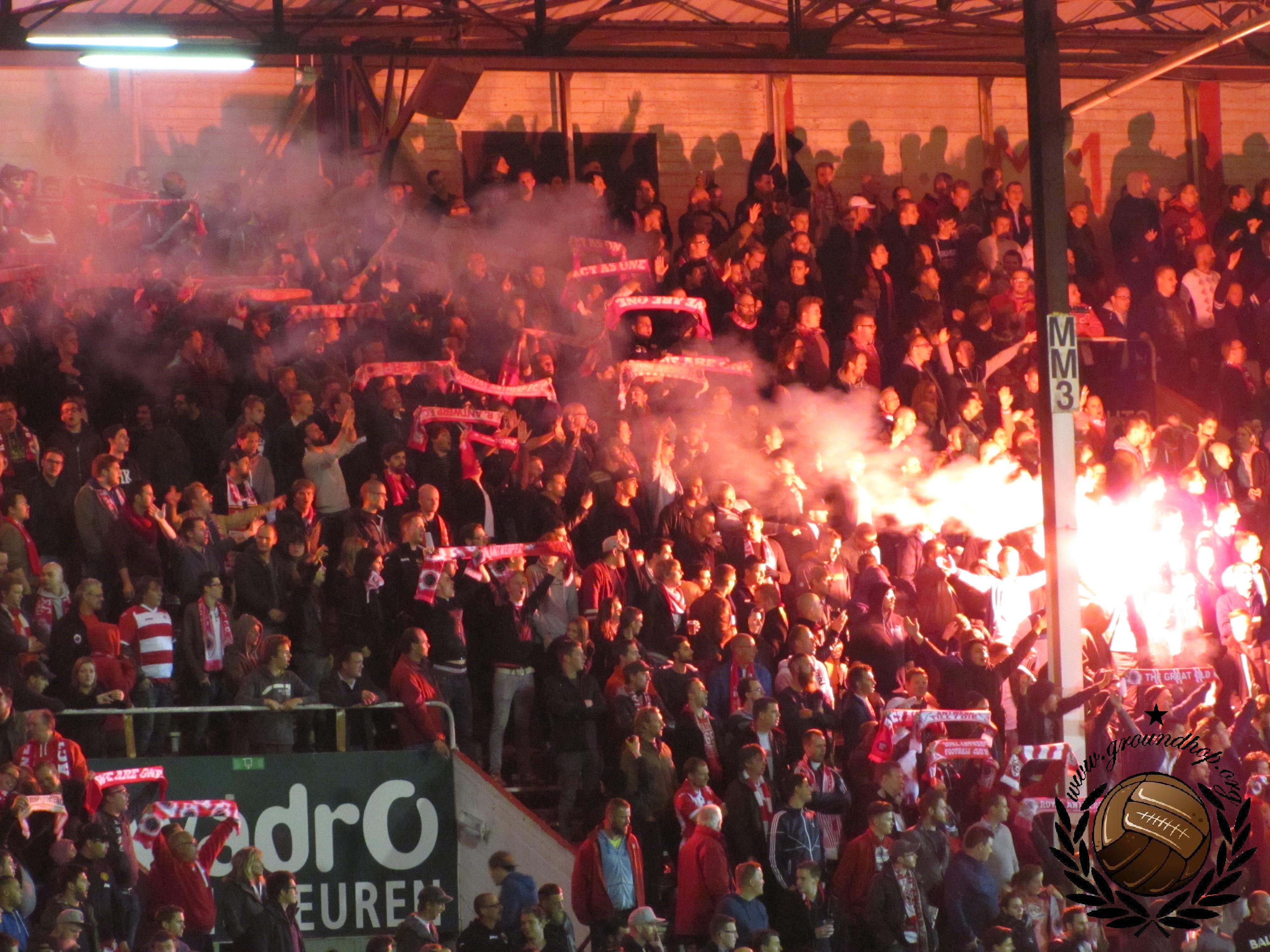 De Antwerp-fans zingen zichzelf en die van Mons moed in met het “You’ll never walk alone.”