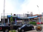 Nog voordat we het perron af zijn zien we al een kroeg met het nodige blauw-zwart.