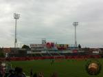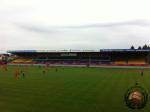 Na een uur of twee zetten we te voet koers richting het stadion. Tegen de tijd dat we de parkeerplaats oplopen merken we dat er toch meer man op af komt dan verwacht. We laten ons e-ticket zien aan meneer de steward en betreden de tribune. We zijn uiterst benieuwd naar het niveau dat we te zien gaan krijgen.