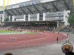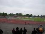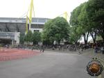 - Het imposante Westfalenstadion torent hoog boven het tribunetje van Rote Erde uit.
