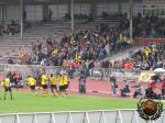 Op het moment dat de wedstrijd begint betreden wij de mythische tribunes van de Rote Erde. We zien, zoals verwacht, dat Dynamo Dresden vocaal de sterkste is vandaag. De hoofdmacht van BVB speelt vandaag uit tegen Wolfsburg, dus de Ultras van Dortmund zijn afwezig vandaag.