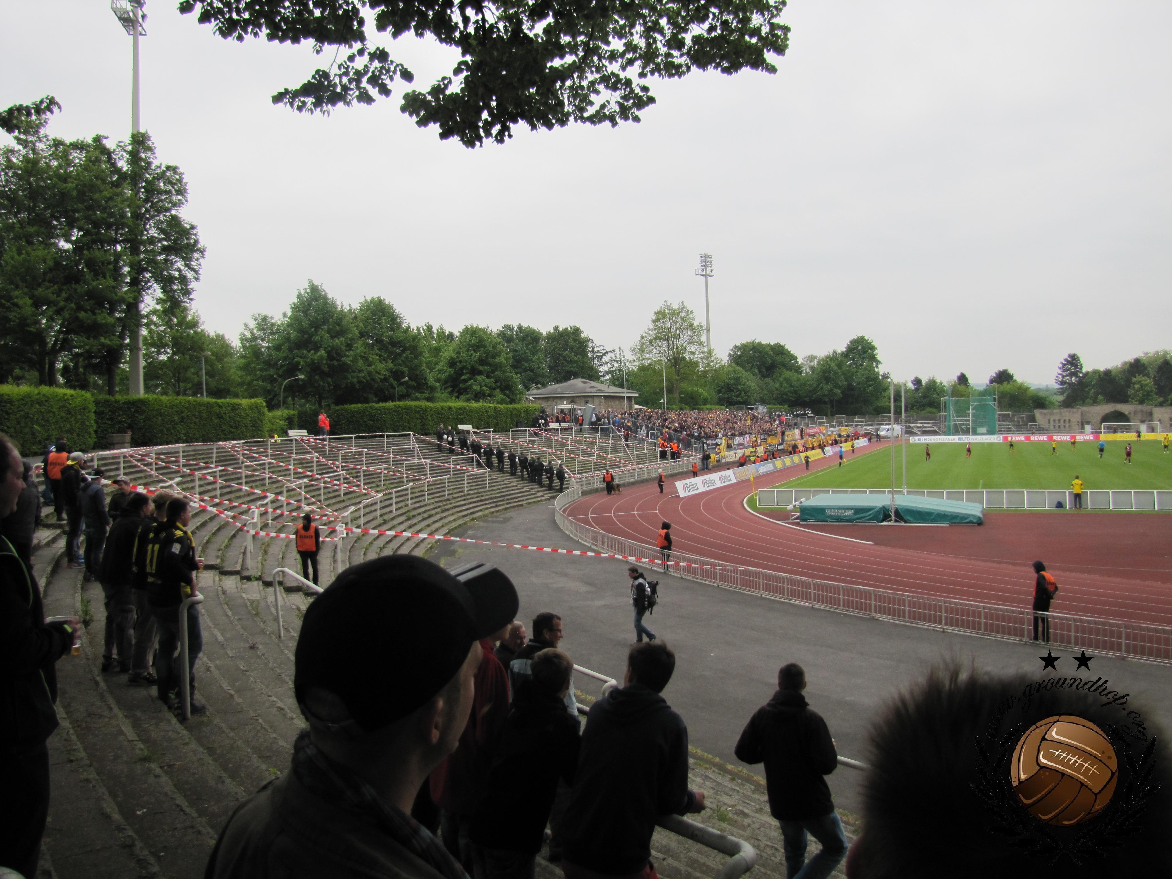 De Dresdener zaten weggestopt aan de andere kant van het stadion.