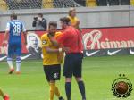 In de 90e minuut blijkt dan toch dat de scheidsrechter zijn kaarten bijheeft. Bij een opstootje trekt hij een rode kaart voor Ahlschwede van Hansa.