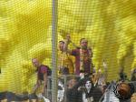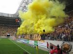 Eerst bezoeken wij de fanshop waar ze een massale uitverkoop aan het houden waren. Net buiten zien wij een Dresdner corteo arriveren met het nodige vuurwerk.