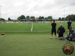 Ondanks ons zeer schappelijke tijdstip van vertrek komen we op zondagochtend nog bijna te laat bij de wedstrijd. Een verkeersinfarct rond London doet een poging om ons te verhinderen. Gelukkig komen wij precies op het fluitsignaal het terrein op zetten.