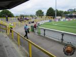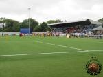 In de tweede helft zoeken wij een lelijke metalen statribune op. Dit voornamelijk omdat wij geen zin hadden om tussen de meute te zitten. Aangezien Bristol een lange zijde bezet, Sutton met het spel meedraait en zich achter onze goal nestelt draaien wij ook maar mee. Het Duitse Altona ’93 is ook met een man of 20 aanwezig. (waarom mag Joost weten). Op onze privétribune aanschouwen wij op het gemak hoe Ryan Broom Bristol naar veilige haven schiet.